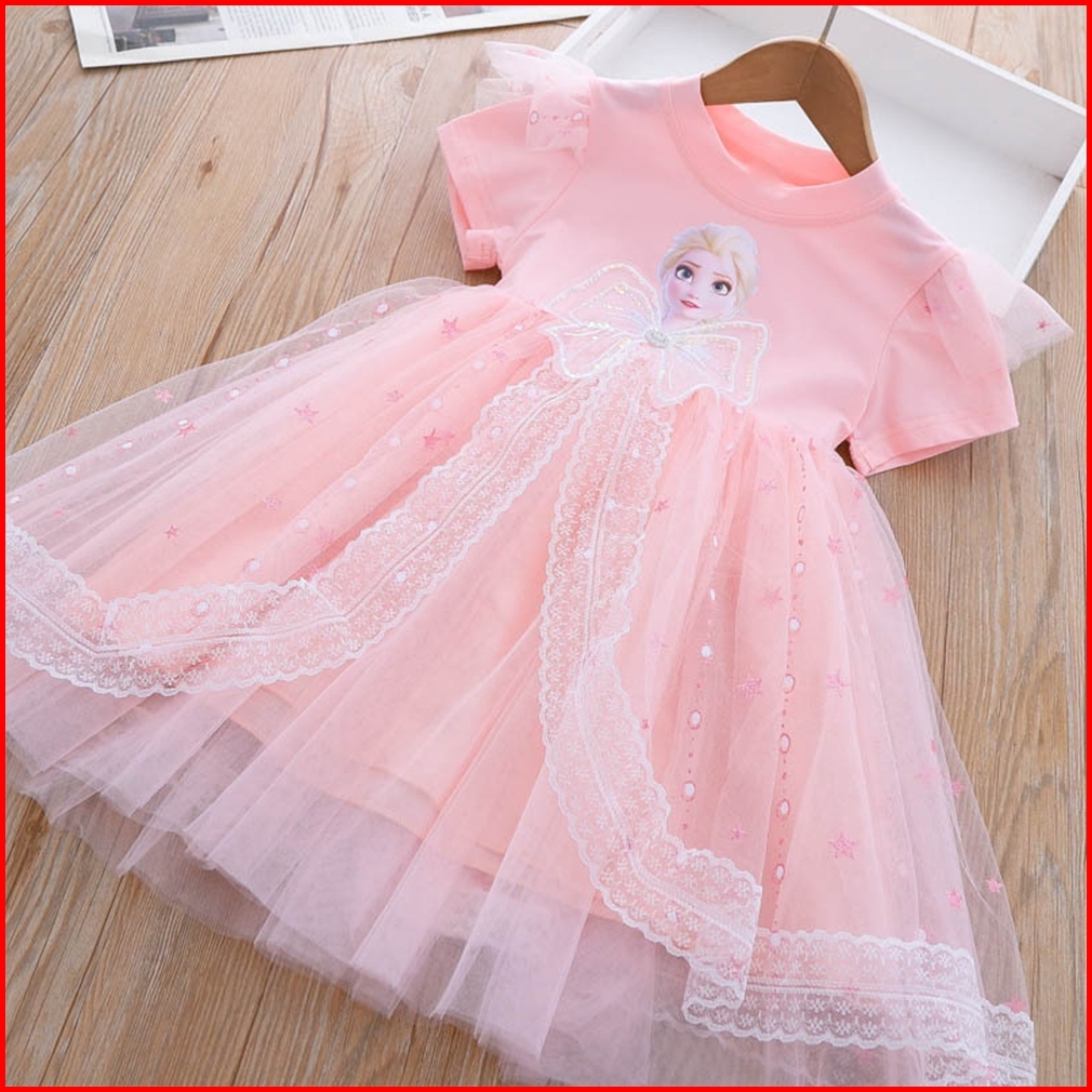 2-8 Tahun Gaun Renda Berkedip Merah Muda Elsa Putri Beku Anak Perempuan Untuk Ulang Tahun Anak Perempuan