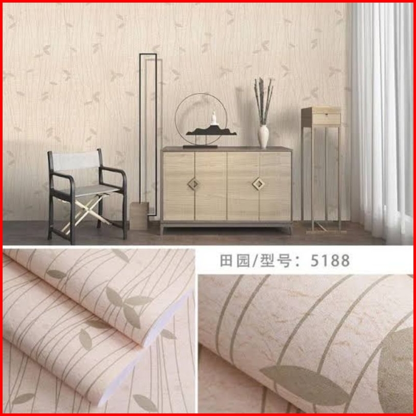Motif Baru - Murah Wallpaper Sticker Dinding Coklat Salur Daun Silver Minimalis Elegan Cantik