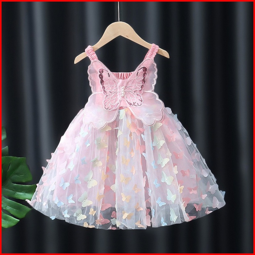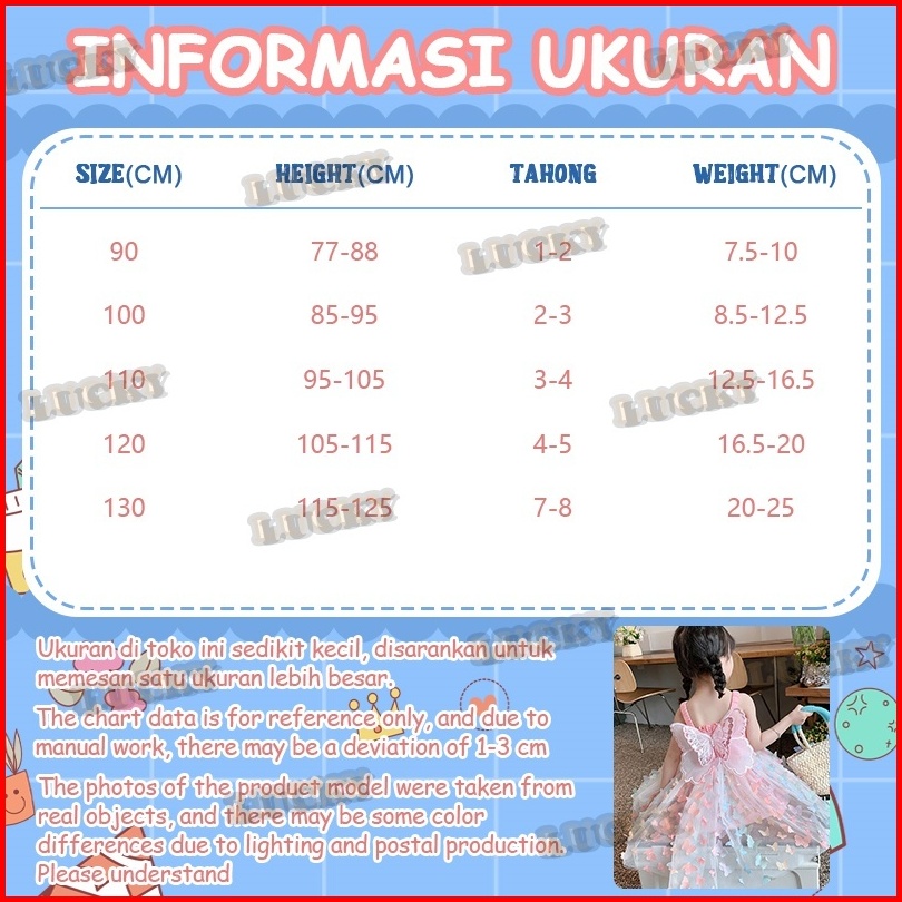 Lucky-- Gaun Peri Kupu-kupu Kasual Korea Tengah Dan Kecil Anak Gaun Anak Perempuan Gaun Lengan Puff Kupu-kupu Gaun Pende