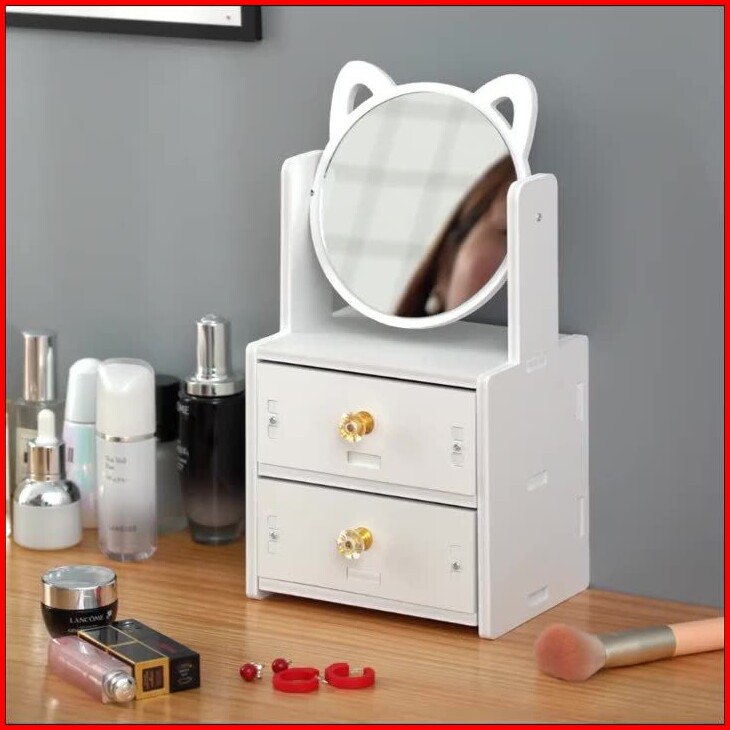 H5579 Rak Makeup 2 Susun Dengan Cermin Rak Kosmetik Tempat Make Up Rak Cermin Make Up 2 Susun Rak Laci Cermin