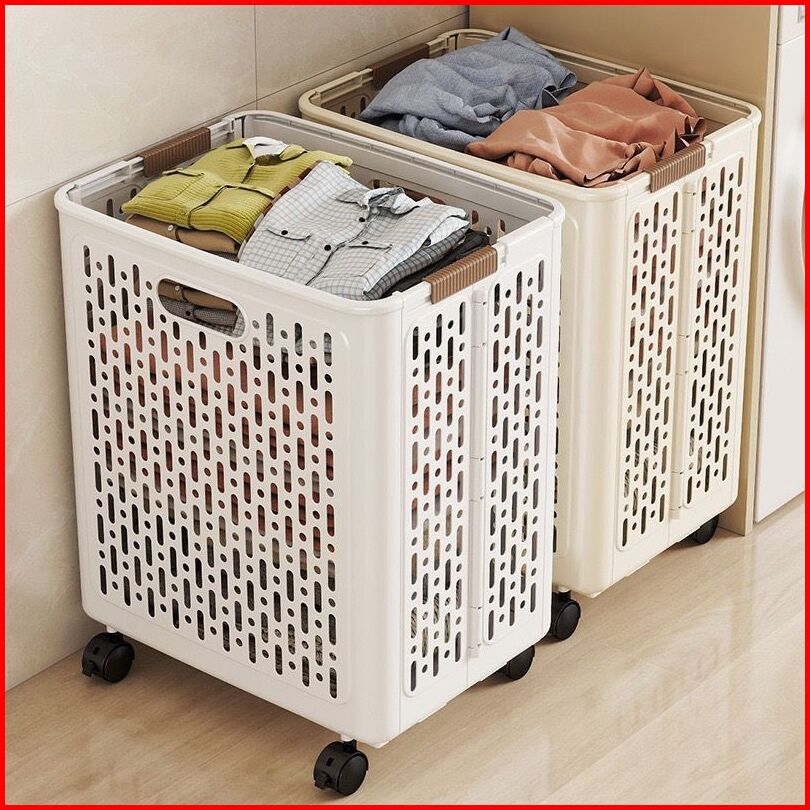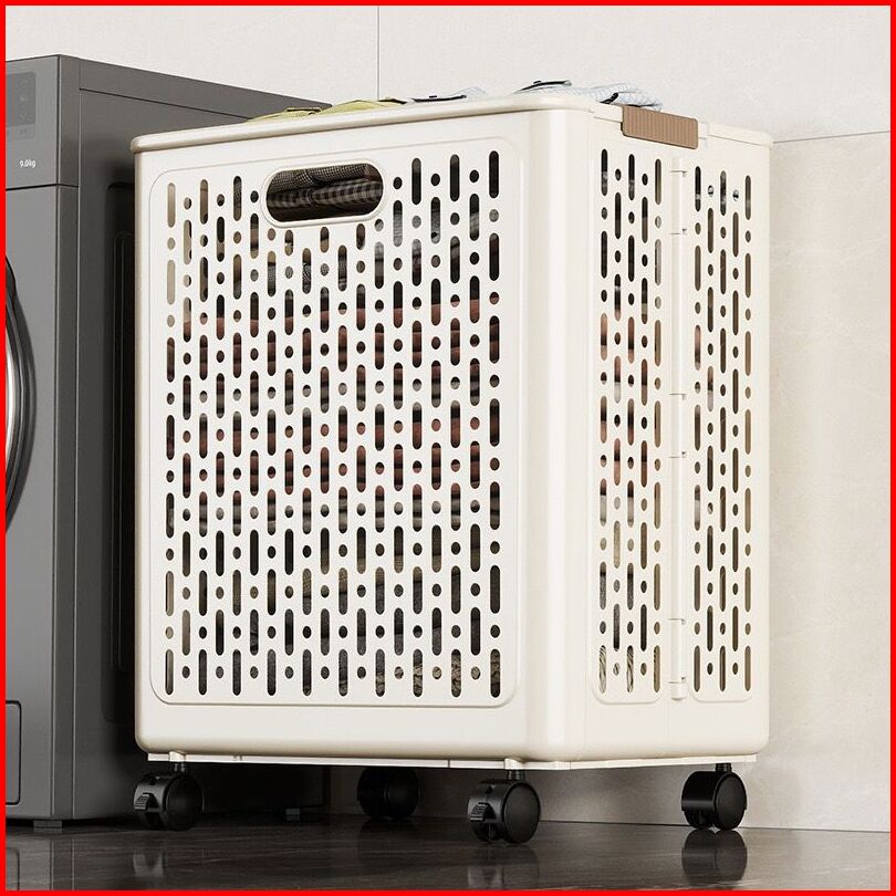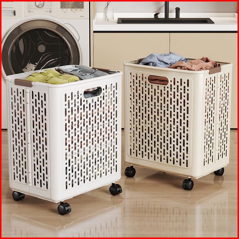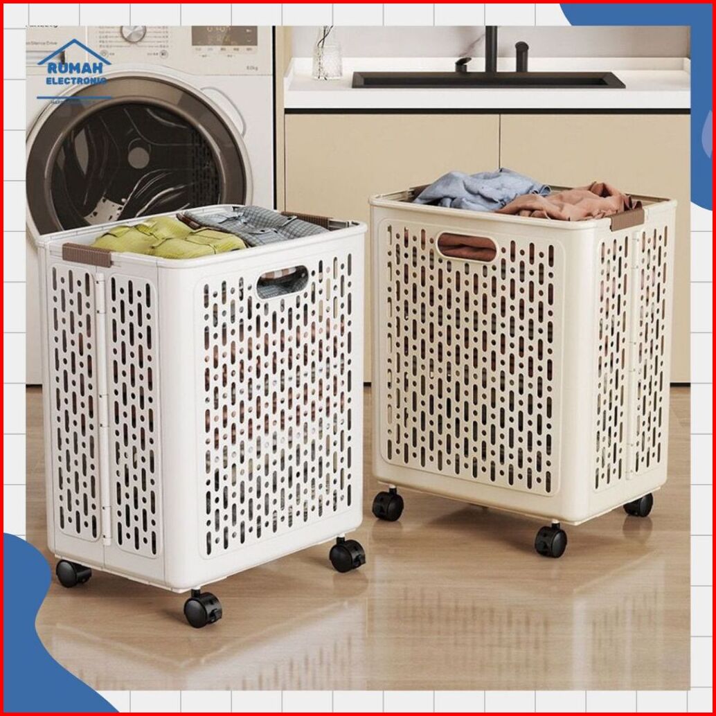 Keranjang Lipat Laundry Aesthetic Dengan Roda Multifungsi