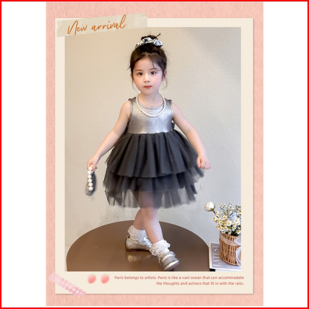 Dress Pesta Anak Perempuan Baju Anak Gaun Ulang Tahun Silver Pandora