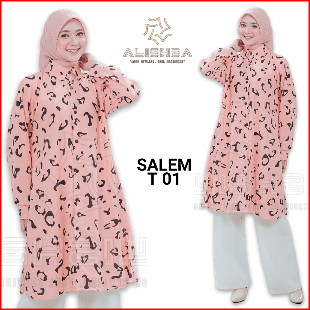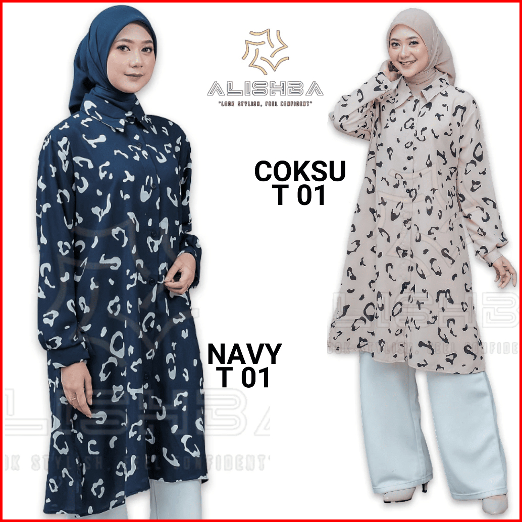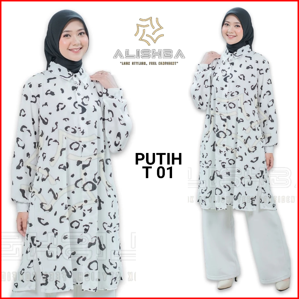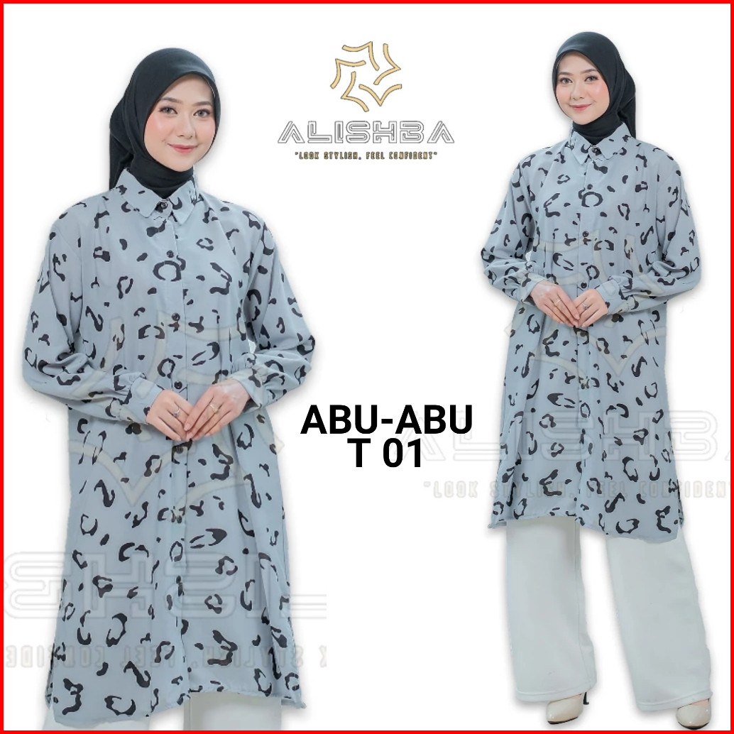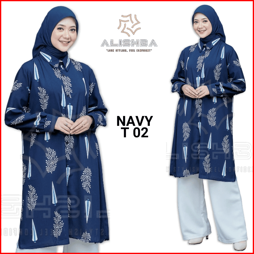 Alishba - Tunik Wanita Motif Daun Elegan Kancing Depan Full Busui Friendly
