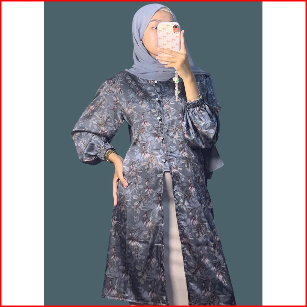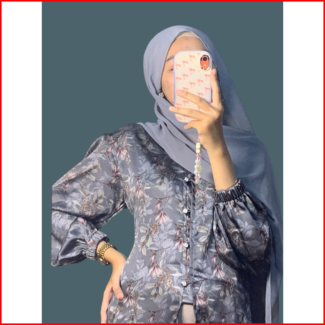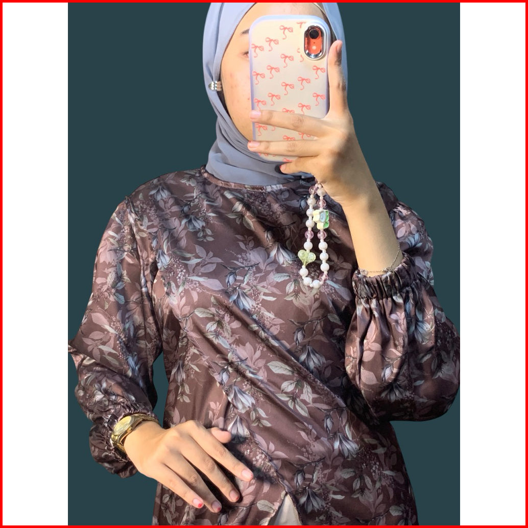 Baju Tunik Wanita Malay Motif Kancing Mutiara Pergelangan Karung Bahan Adem Lembut