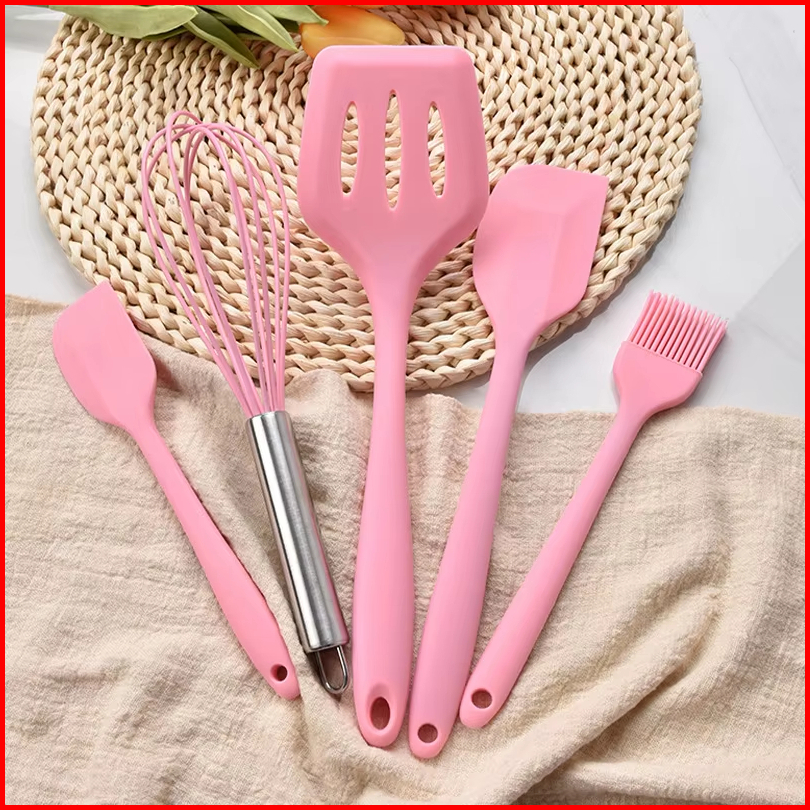 Spatula Set Alat Masak 5 In 1 Sutil Scrap Silicone Spatula Peralatan Masak Silikon Tahan Panas
