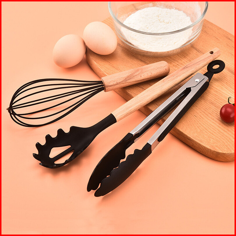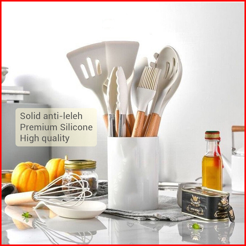 Kitchen Utensil Set Silicone 12 Pcs Spatula Masak Tahan Panas Gagang Kayu Food Grade