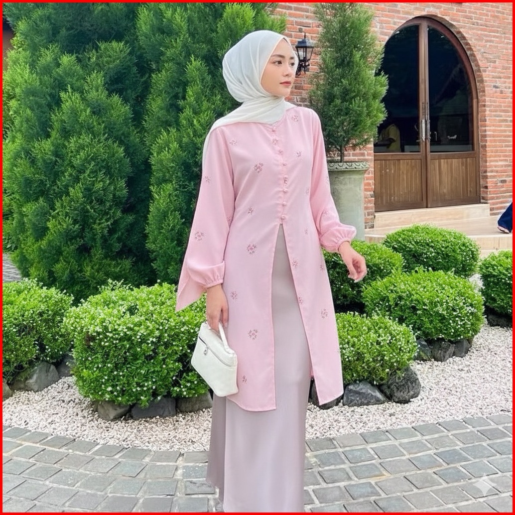 Sabila Shakila Premium Slit Tunik Motif Lengan Panjang