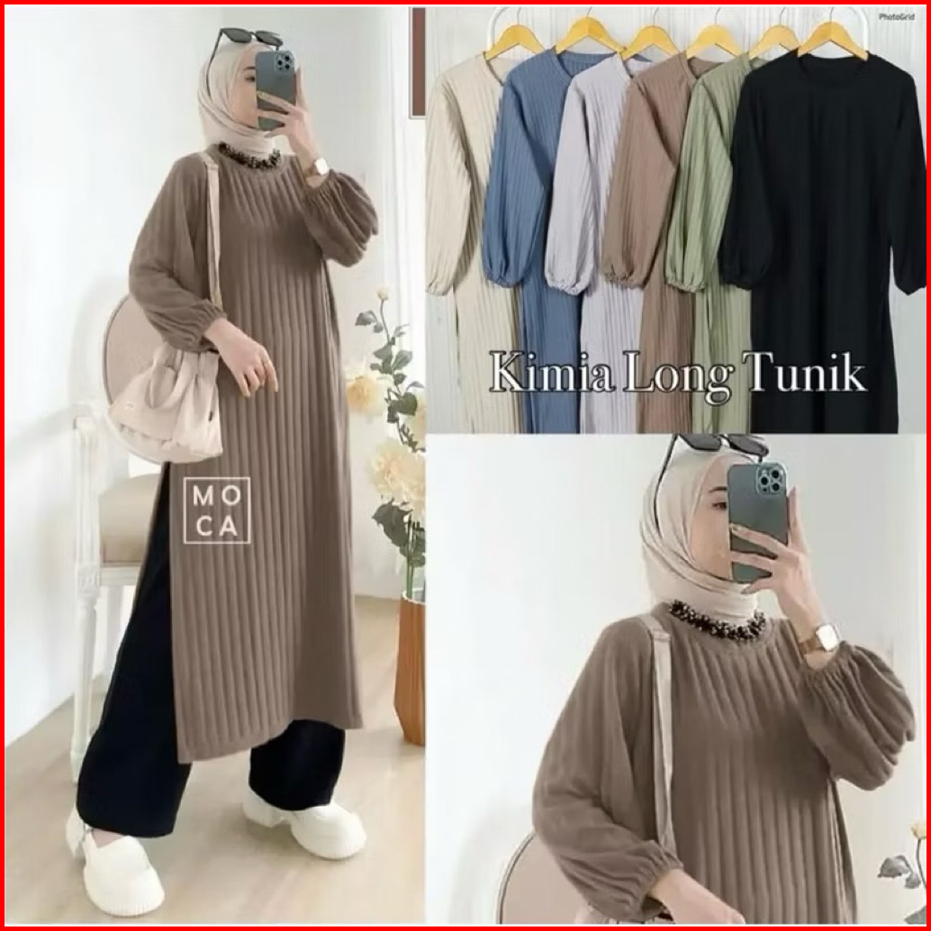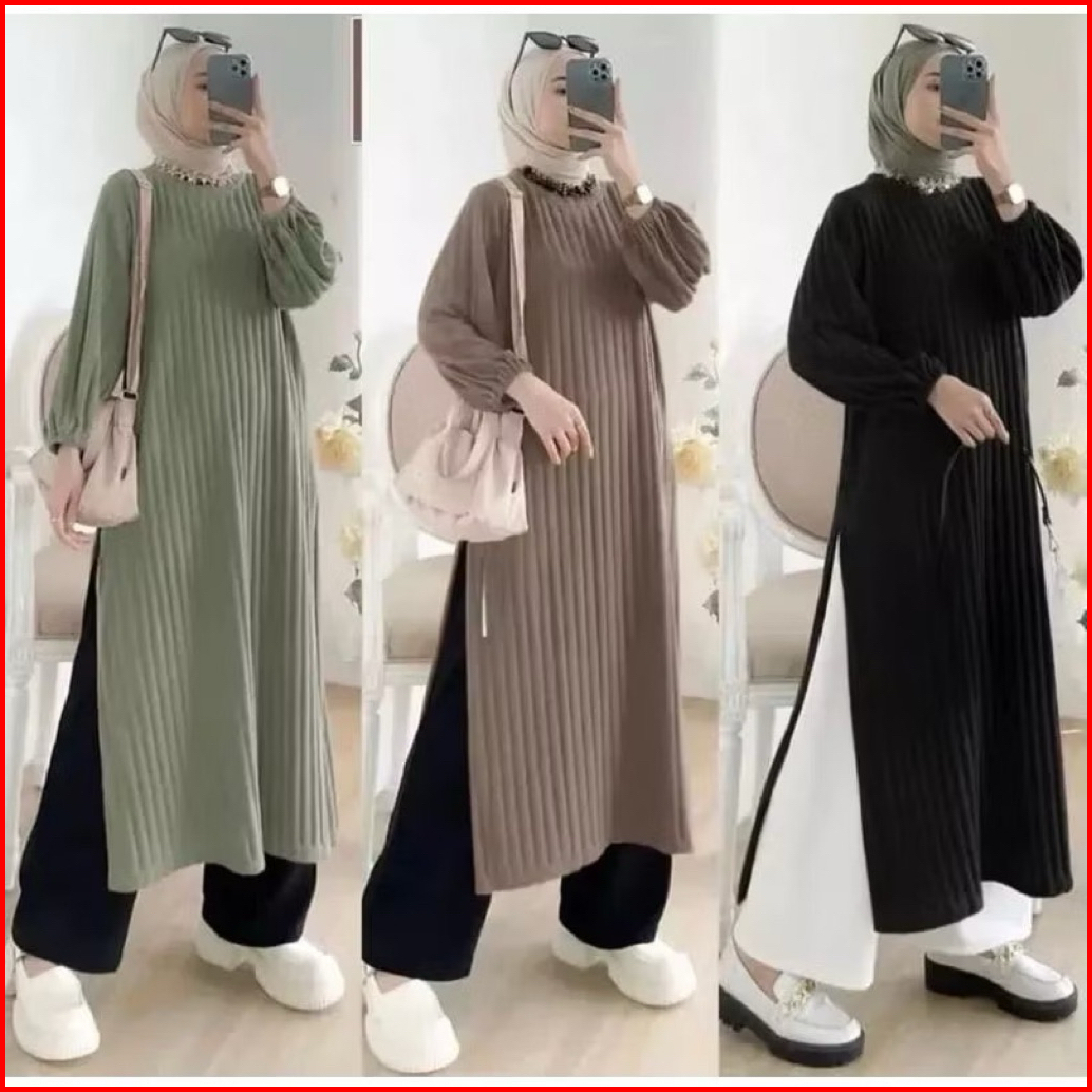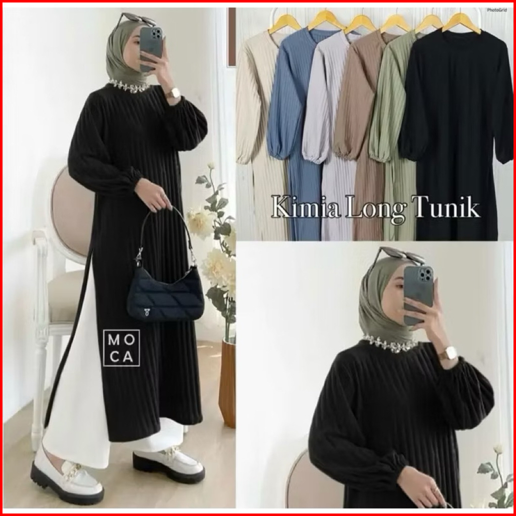 Kimia Long Tunik Hornet Premium Tania Tunik Wanita Panjang Belah Samping Lengan Karet