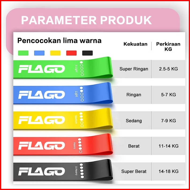 Flago Resistance Bands Alat Fitness 1 Set 5pcs Elastis Fitness Loop Bands Tali Fitness