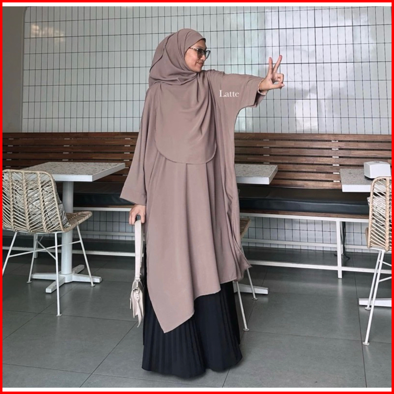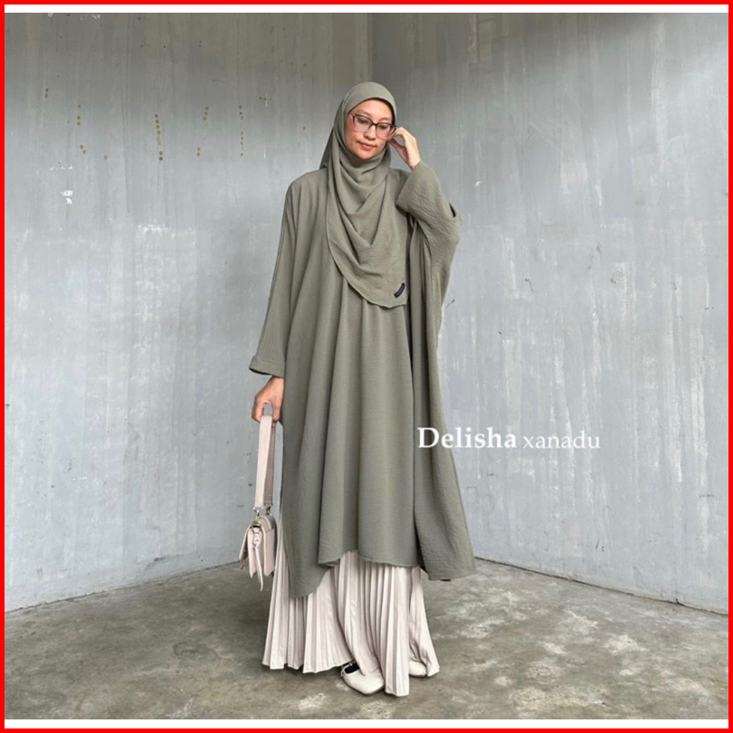 Delisha Kaftan Tunik Set Hijab Tunik Wanita Set Pashmina Crinkle Kafnik Terbaru