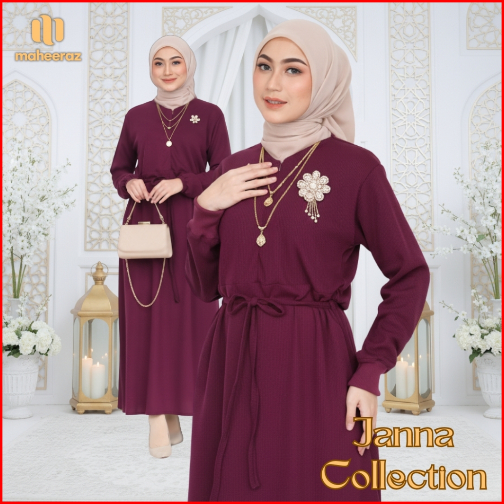 Maheeraz Dress Gamis Wanita Kekinian Baju Lebaran Wanita 2026 Mewah Elegan Janna