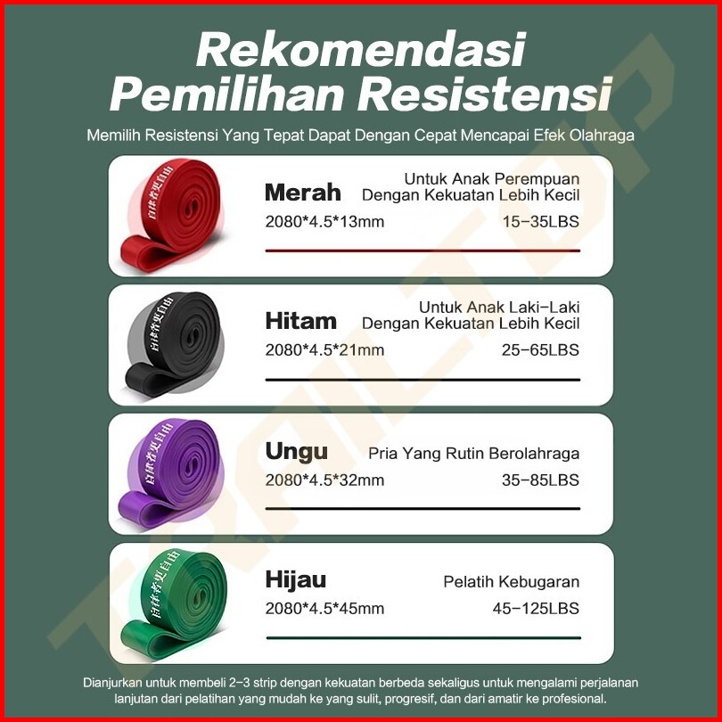 Trailtop Resistance Band 15-125lbs Tali Karet Elastis Olahraga Gym Alat Yoga Fitness Anti Slip