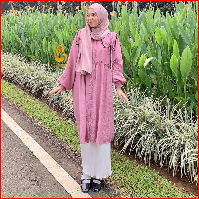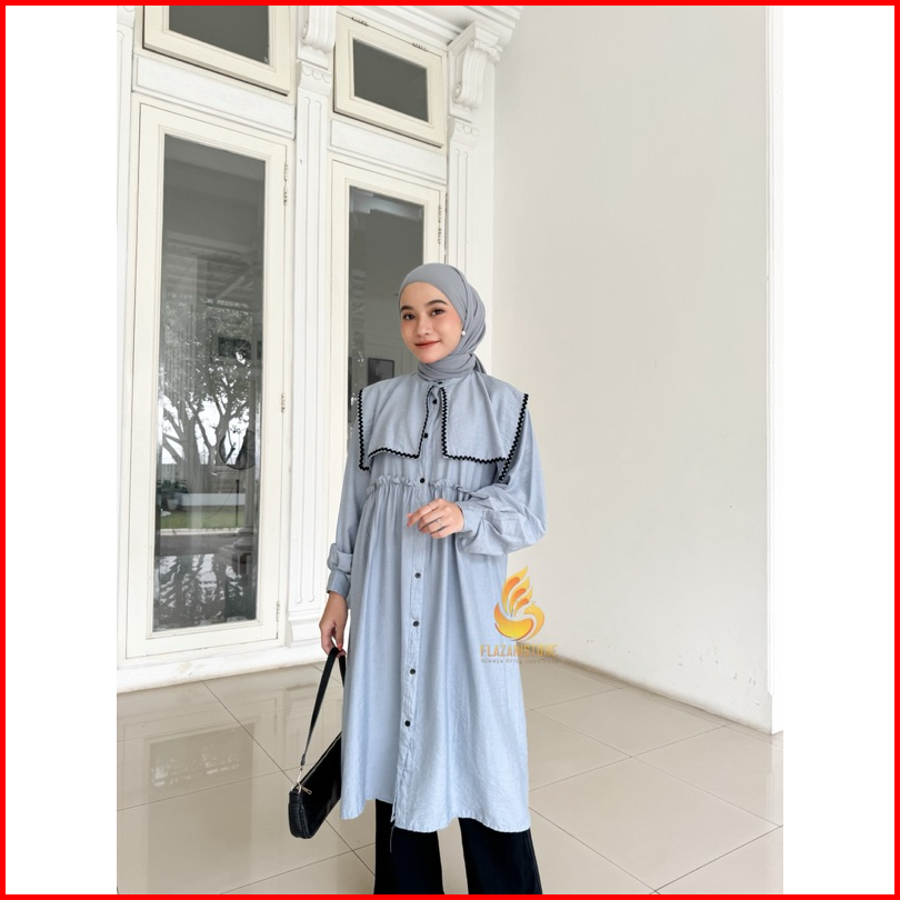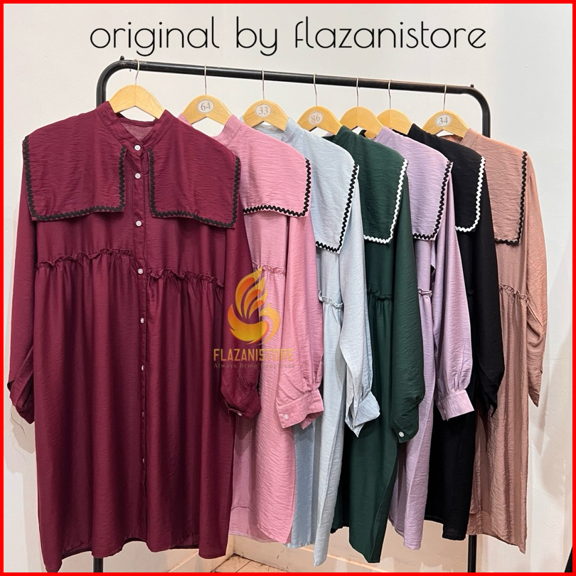 Flazani-naruna Tunik Layer Korean Style Polo Linen Size M L Xl Xxl Atasan Anwanita Polos Jumbo Busui Friendly - Tunik Ka