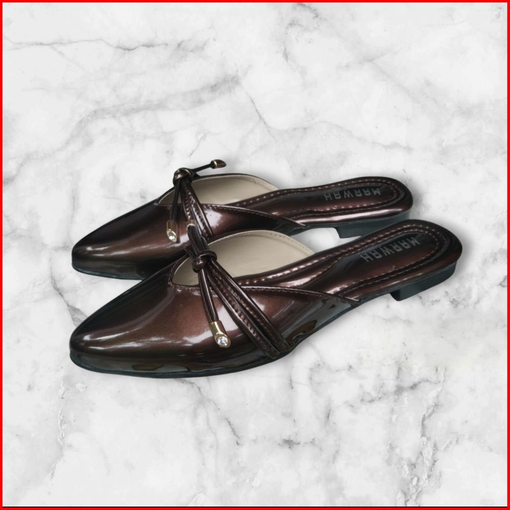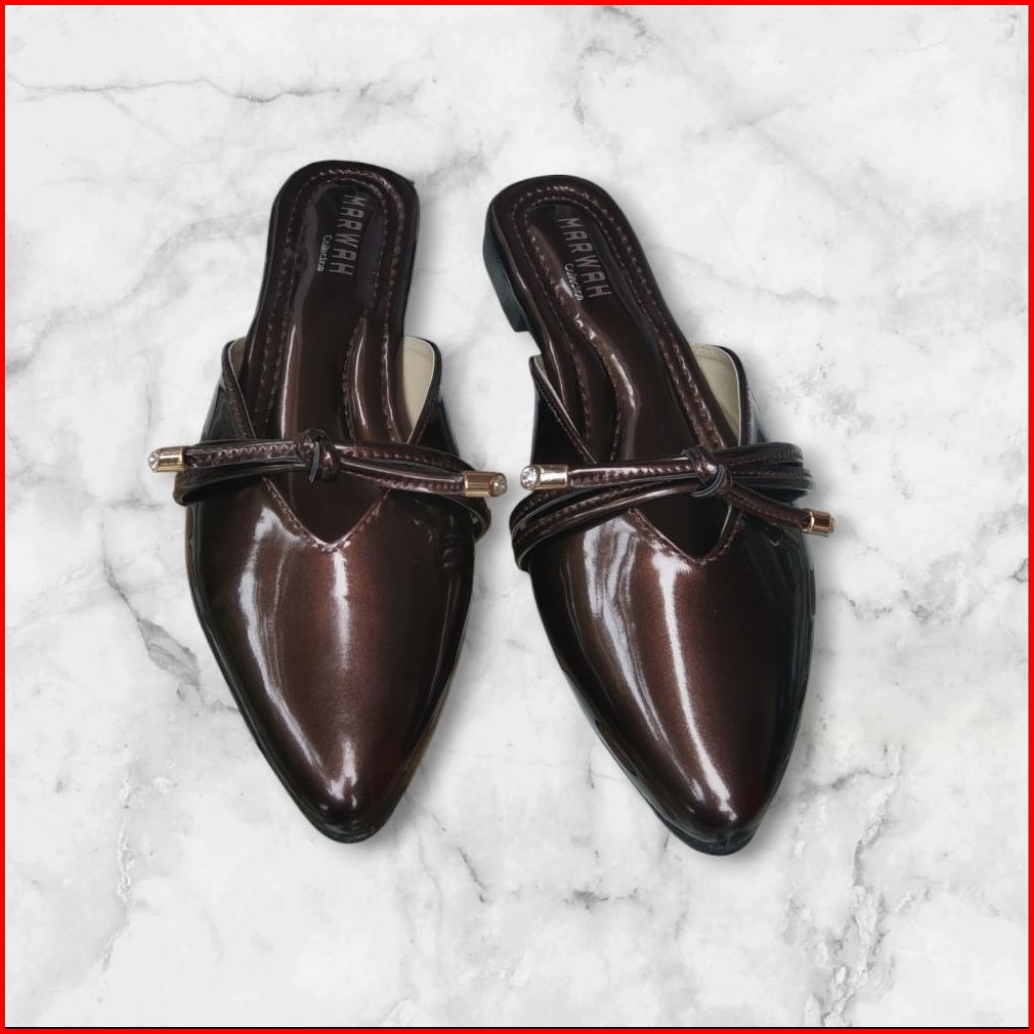 Flatshoes Bapau Fita Tali Runcing Bambu Empuk