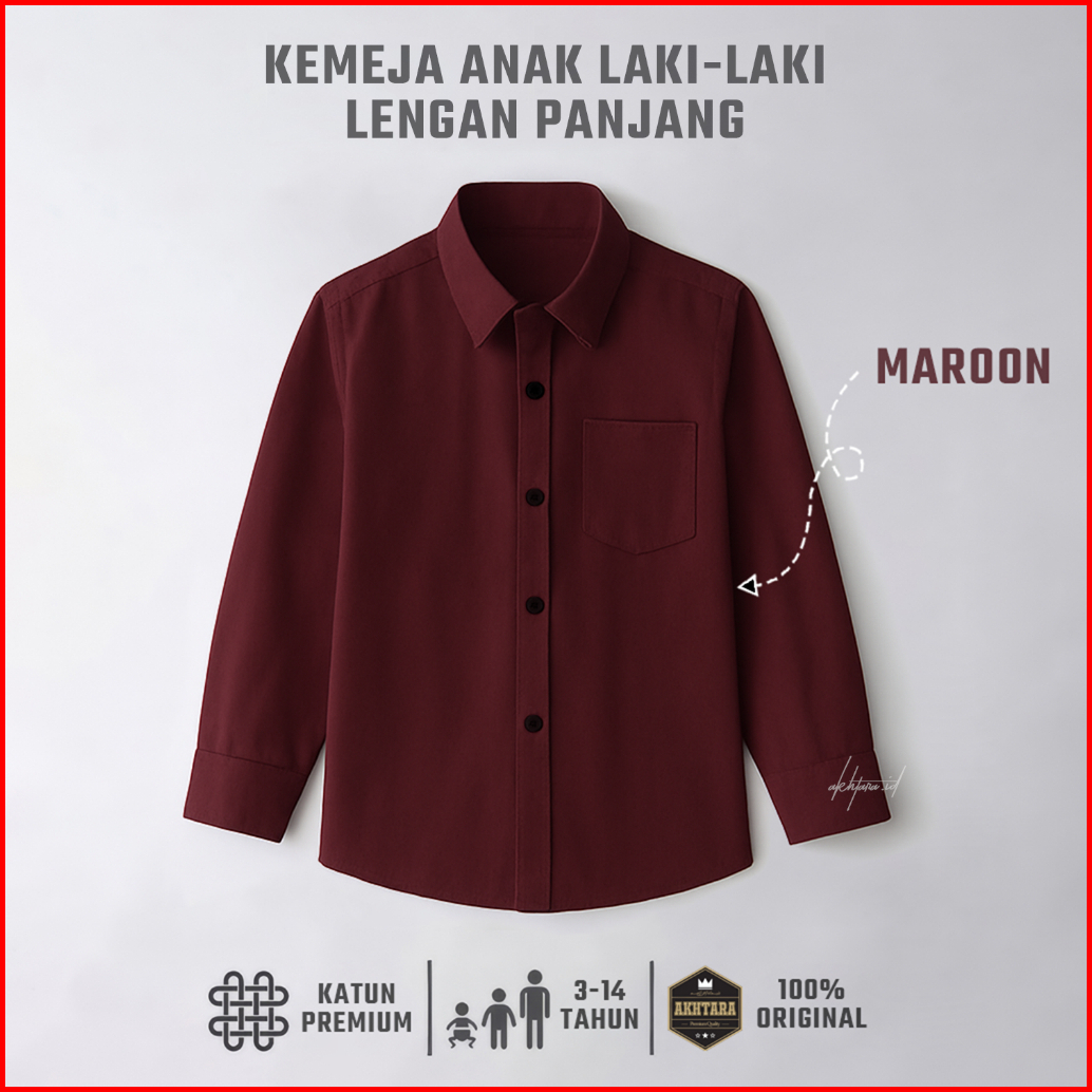 Akhtara.id - Baju Kemeja Anak Laki-laki Polos Lengan Panjang Bahan Halus Dan Adem Umur 3-14 Tahun