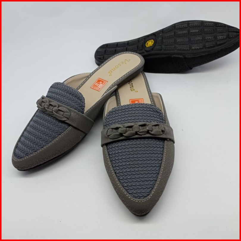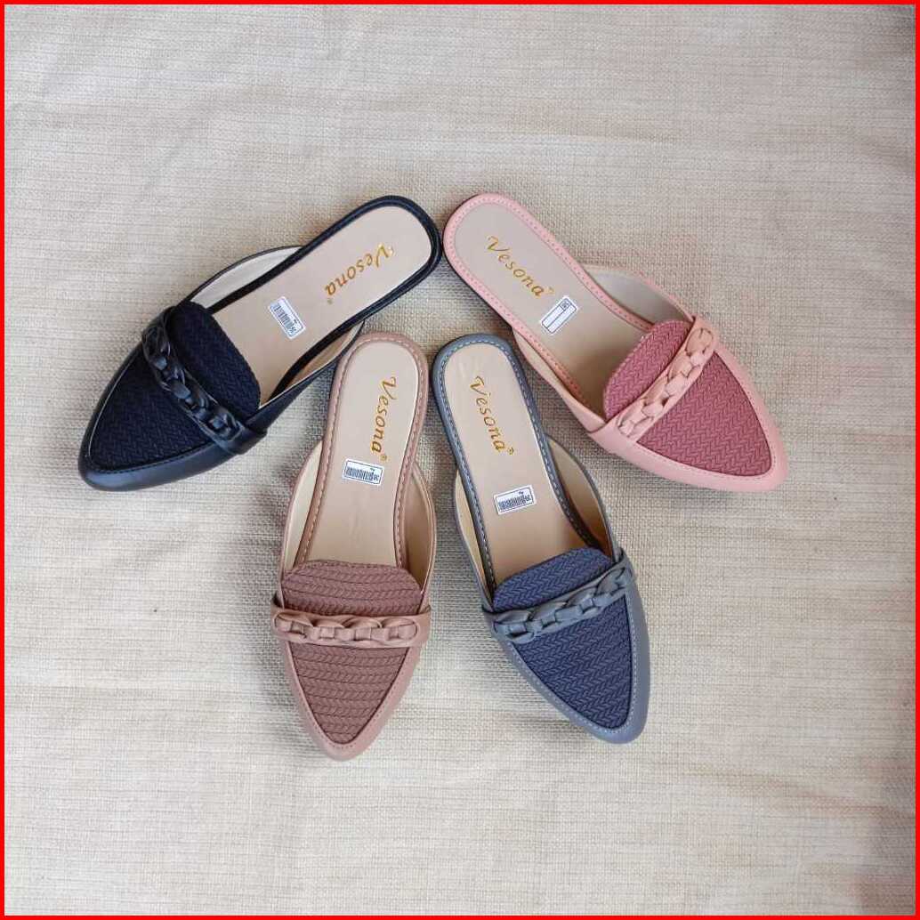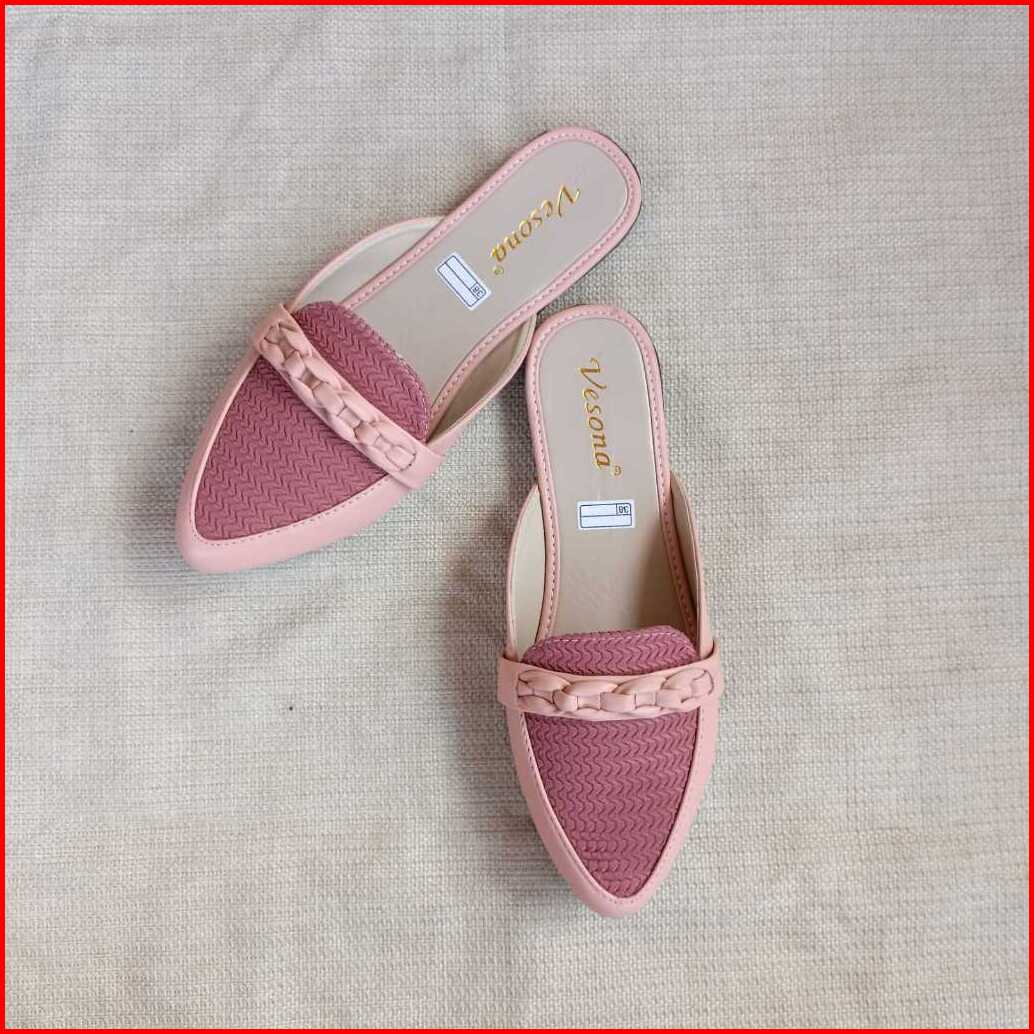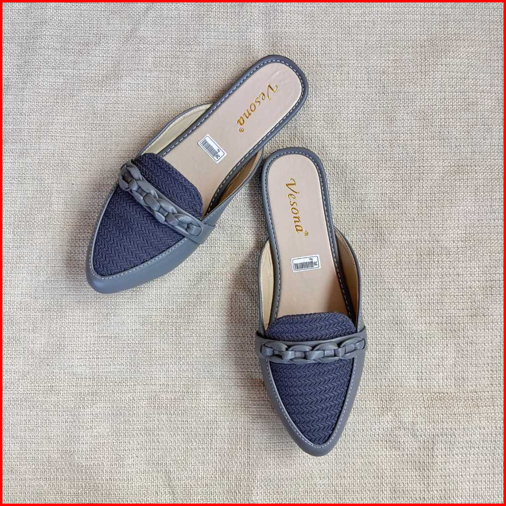Sepatu Flat Shoes Wanita Slop Rajut Big Size Kekinian