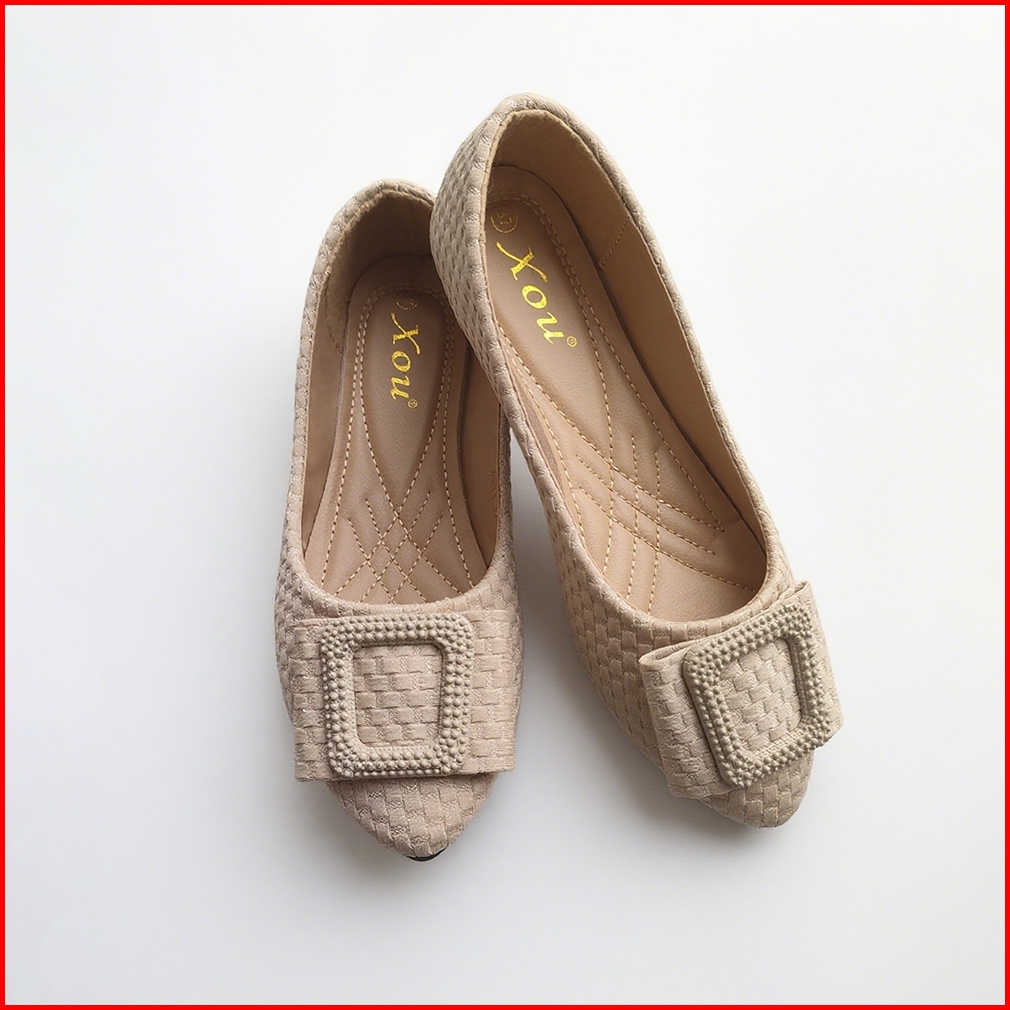 Xou Fashion Flatshoes Wanita Kain Yang Nyaman Elegan Kekinian Korean Style Grid 2025