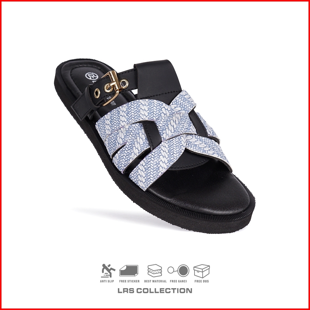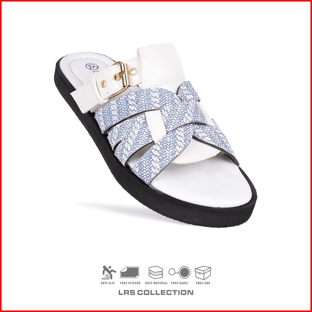 Lrs Collection - Sendal Wanita Kanvas Nyaman Mewah Sandal Flat Wanita Amara - White Sky Edition