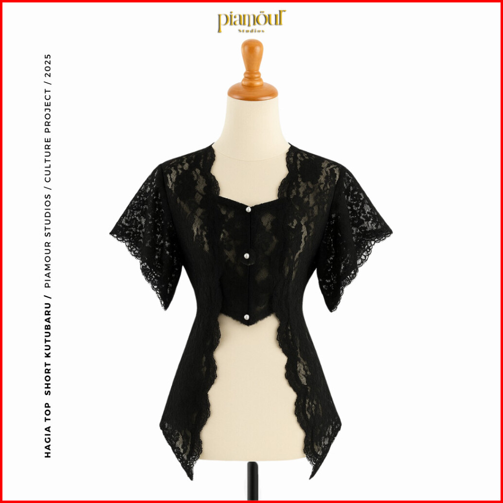 Piamour Hagia Top Set Kebaya Kutubaru Modern Atasan Outer Kebaya Kutu Baru Lengan Pendek Baju Kondangan Wanita Kekinian