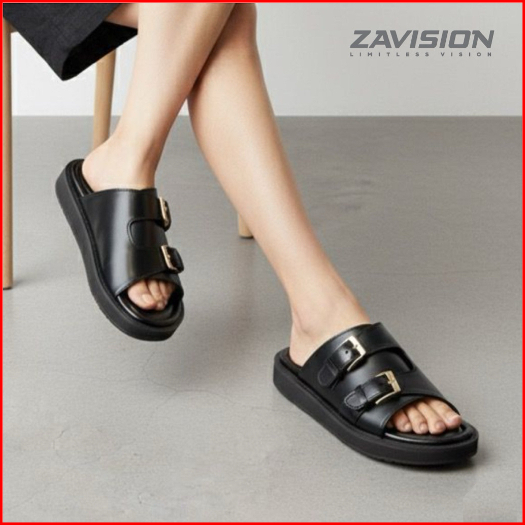 Zavision Sandal Flat Wanita Casual Nyaman Sol Tebal Empuk Korea Style Kekinian