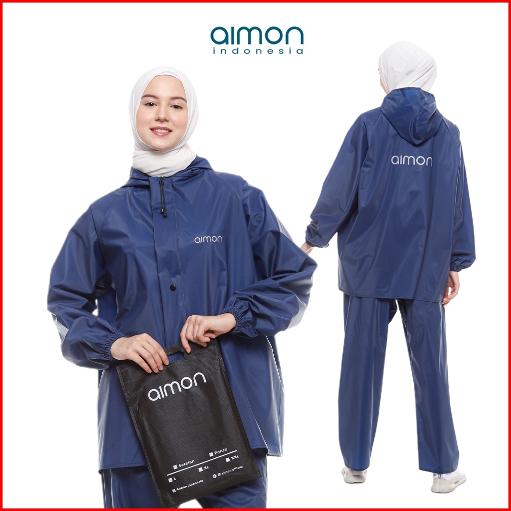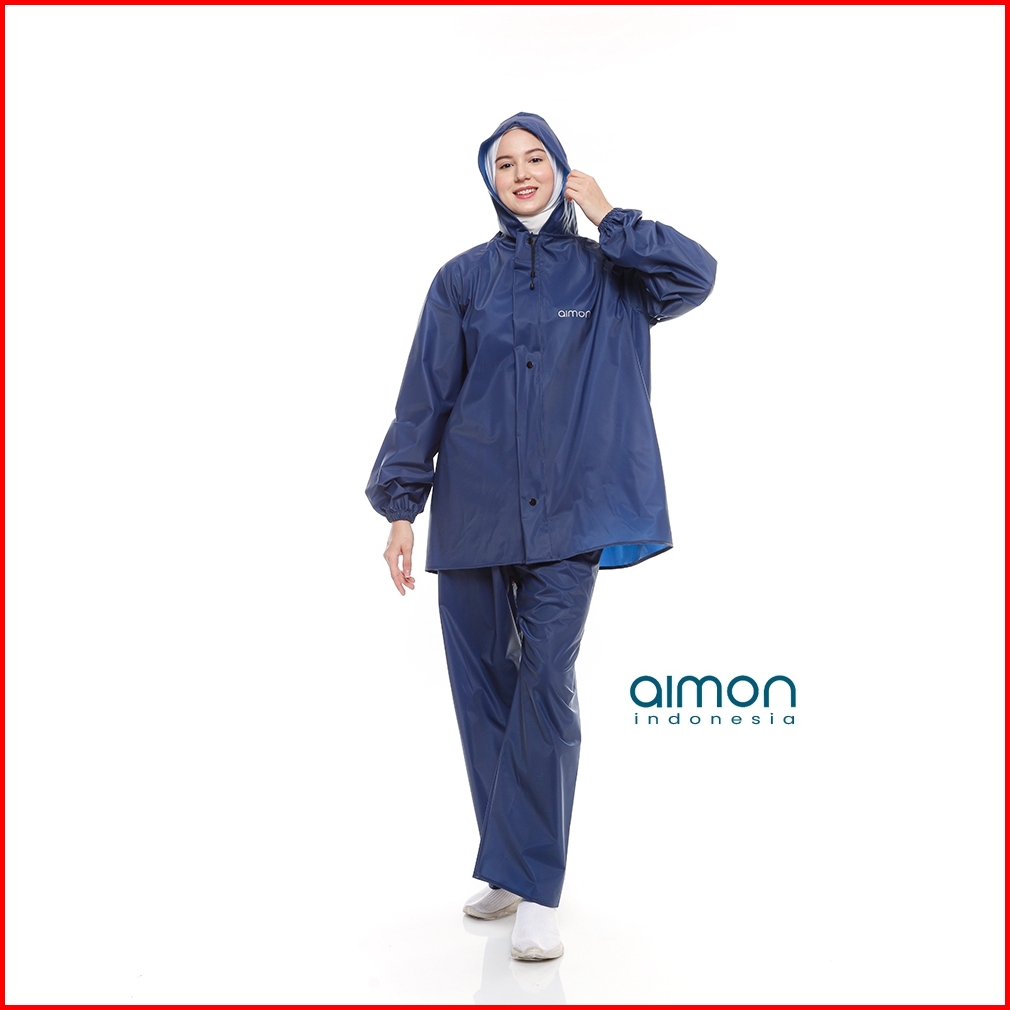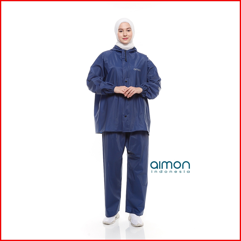 Jas Hujan Pria Wanita Dewasa Setelan Aimon Biru Navy