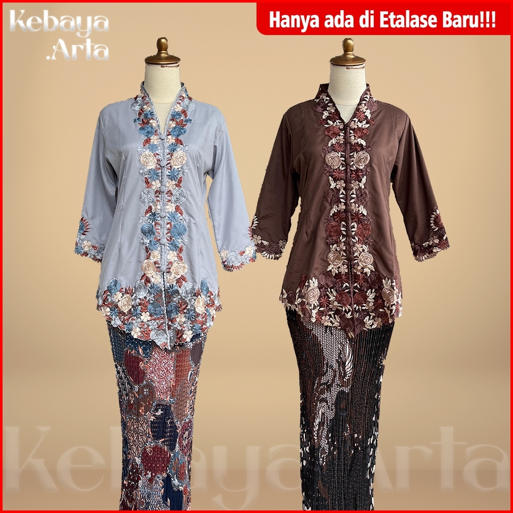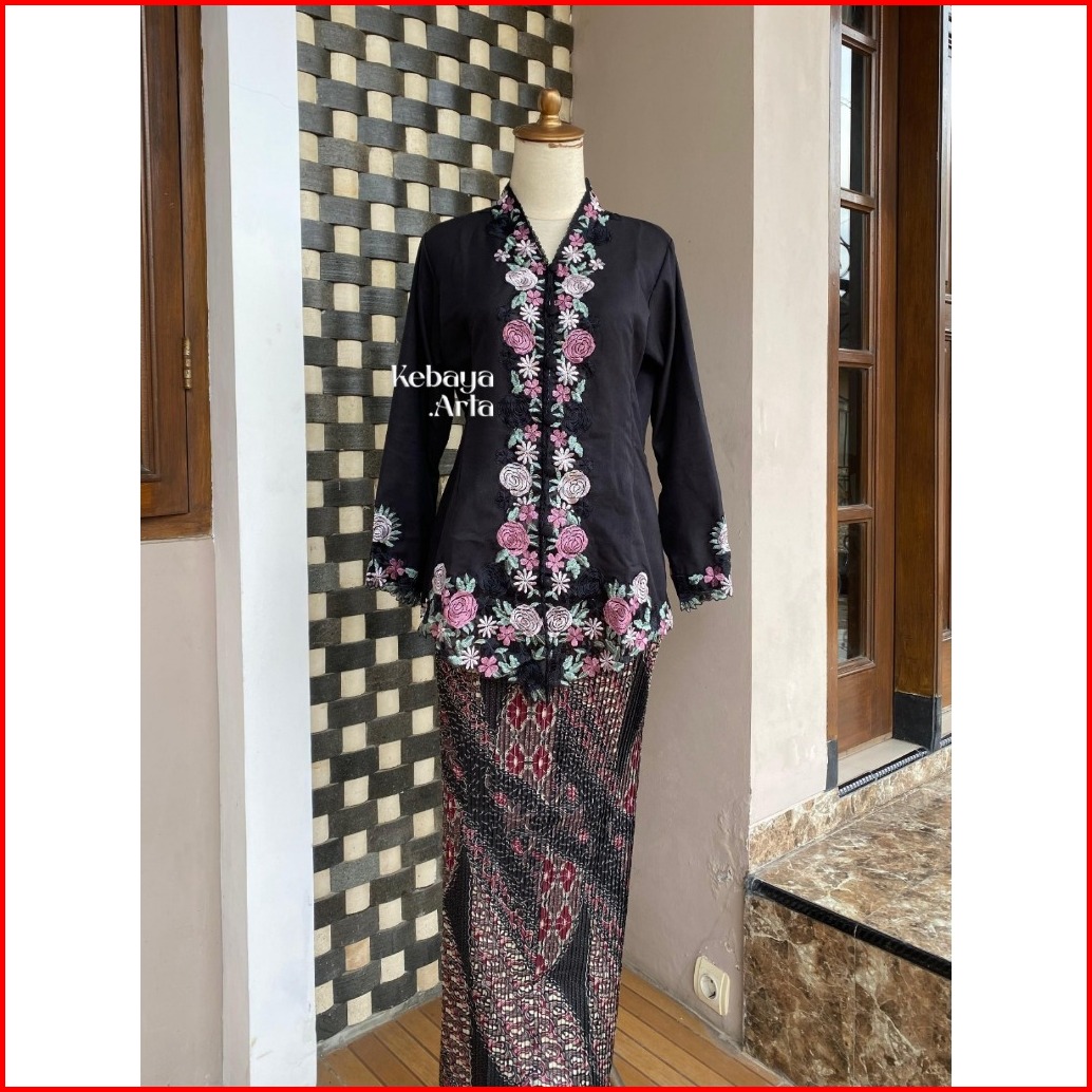 Kebayaarta - One Set Kebaya Encim Bordir Motif Bunga Warna Lengan Panjang Bahan Katun Mikro Size S - Jumbo