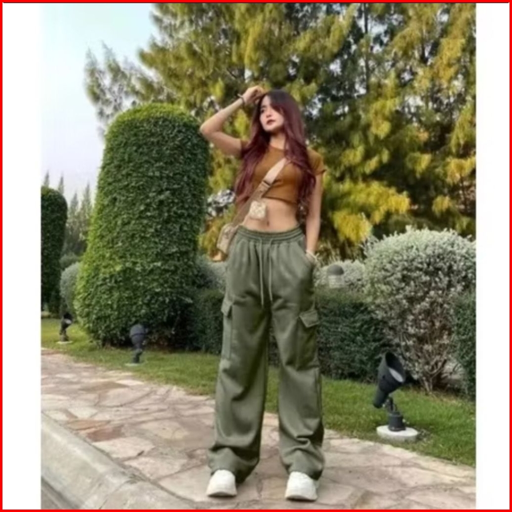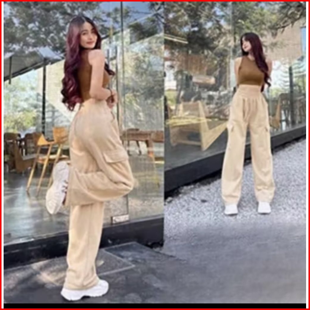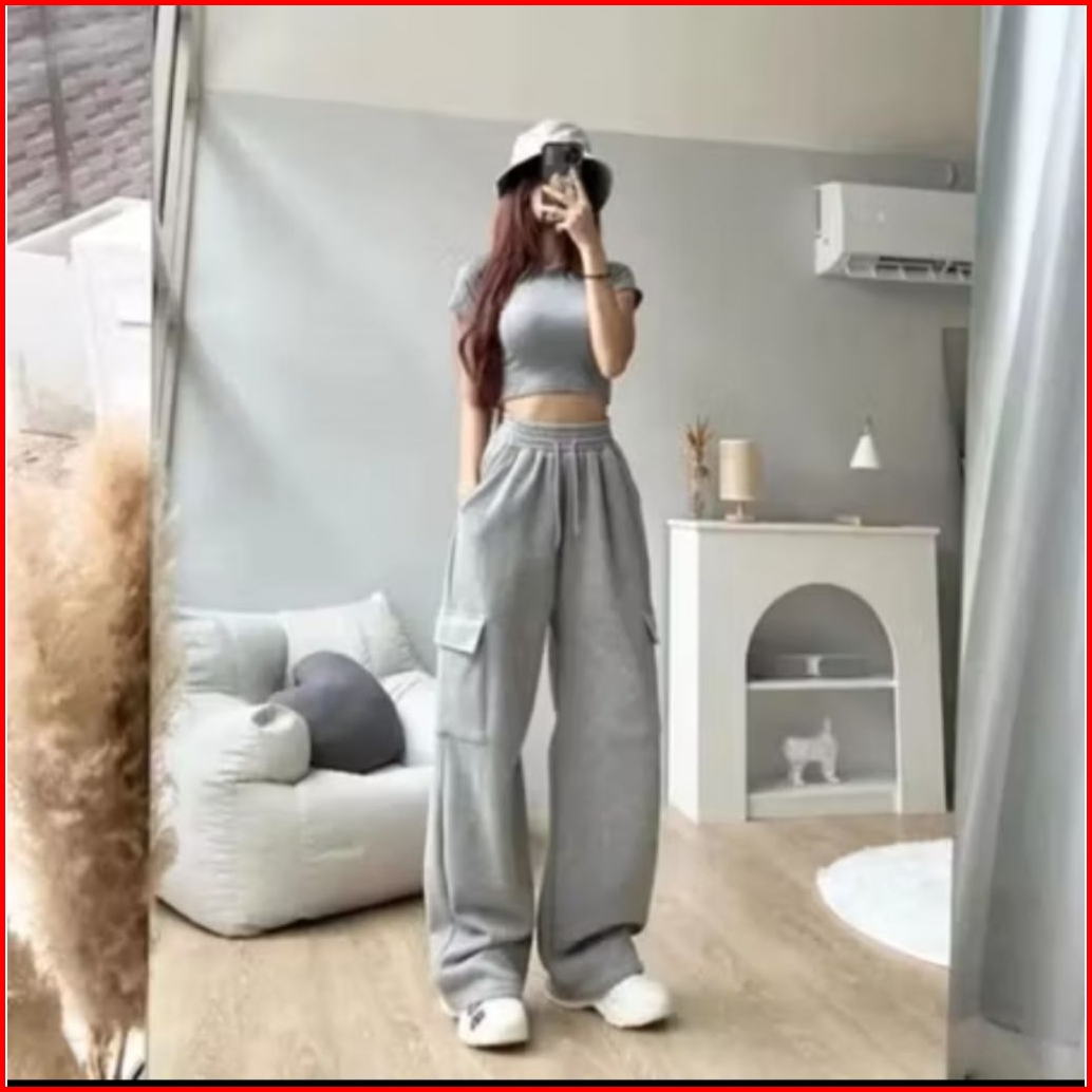 Celana Kargo Wanita Korean Style Fleece Lembut