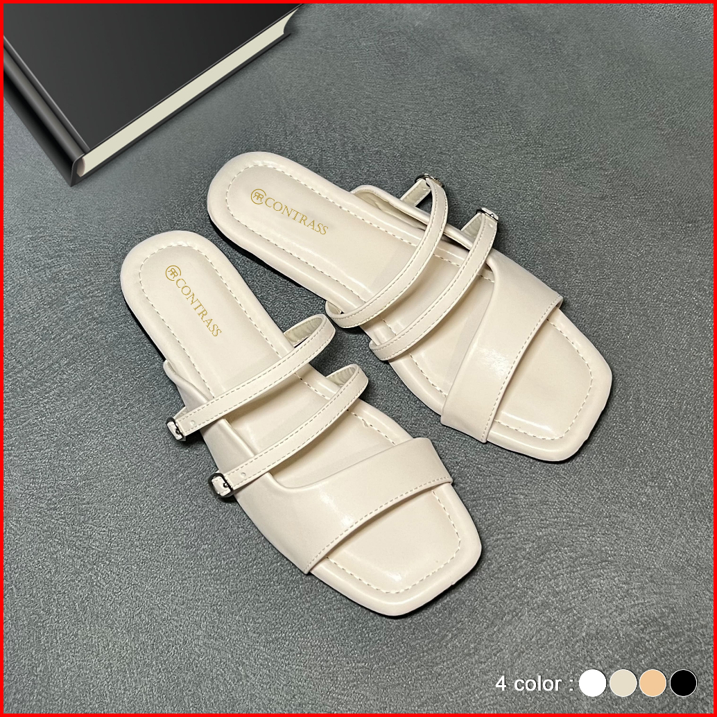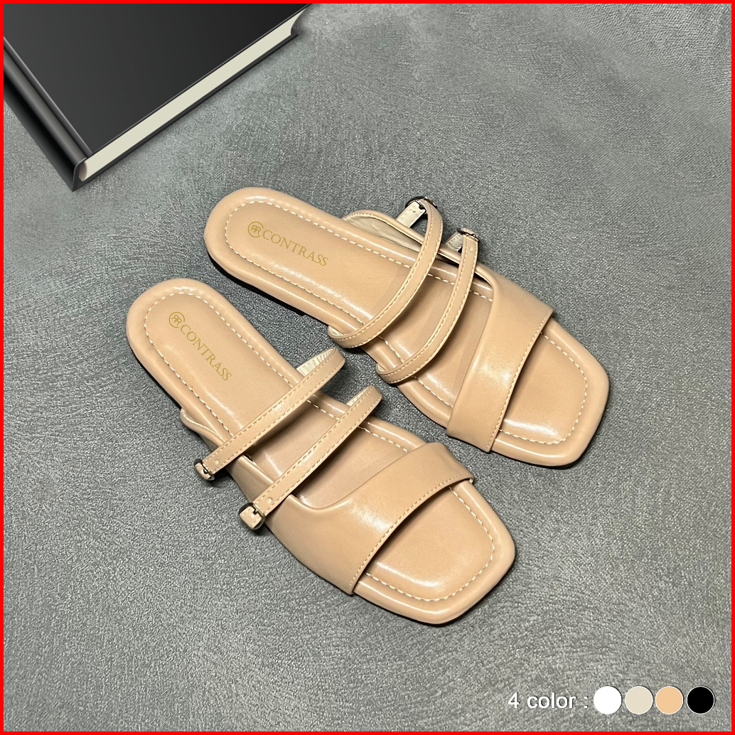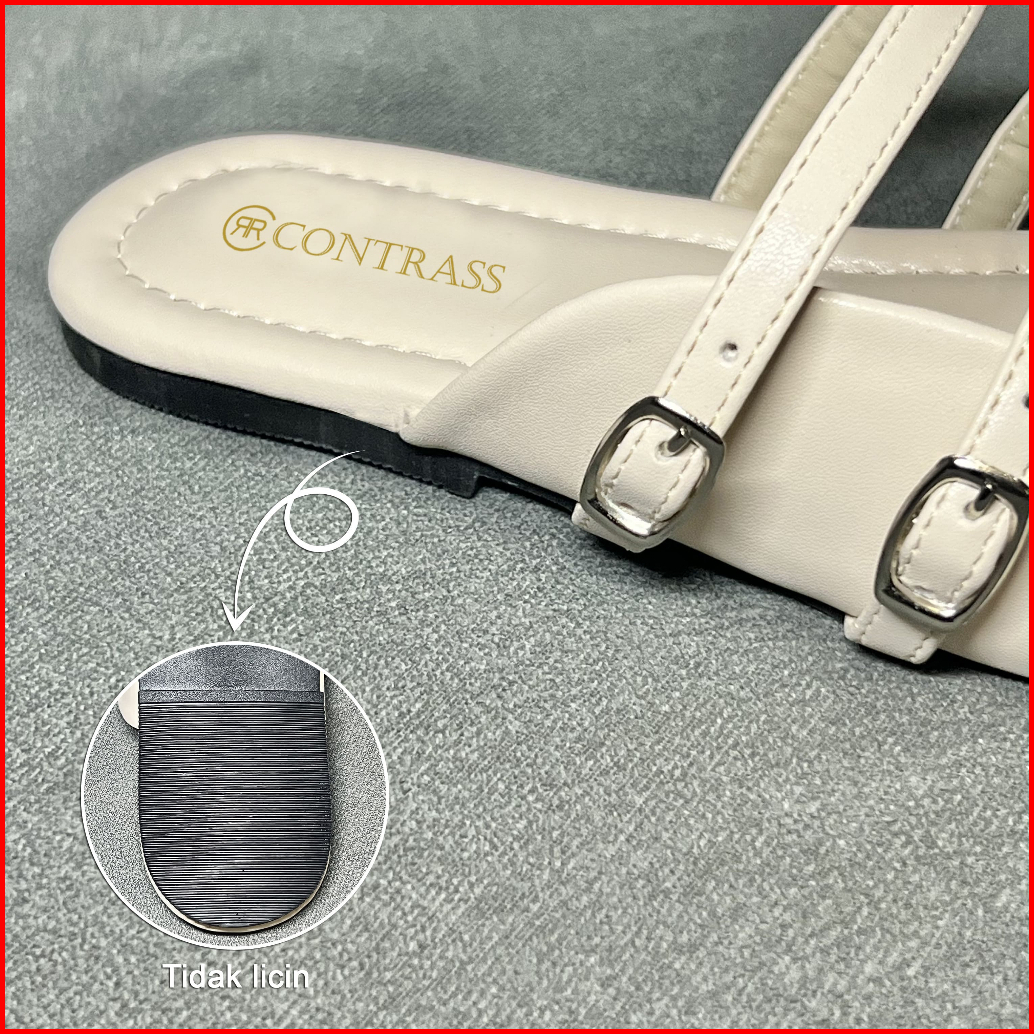 Sandal Flat Wanita Sol Double Gesper Alas Busa Empuk Korean Style Rrc