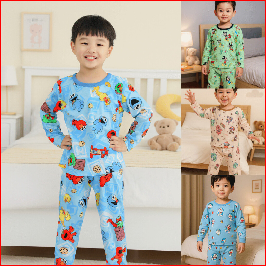 Bibo 61 Baju Tidur Printing Premium Doraemon Mickeymouse Toystory Elmo Usia 1-6 Tahun