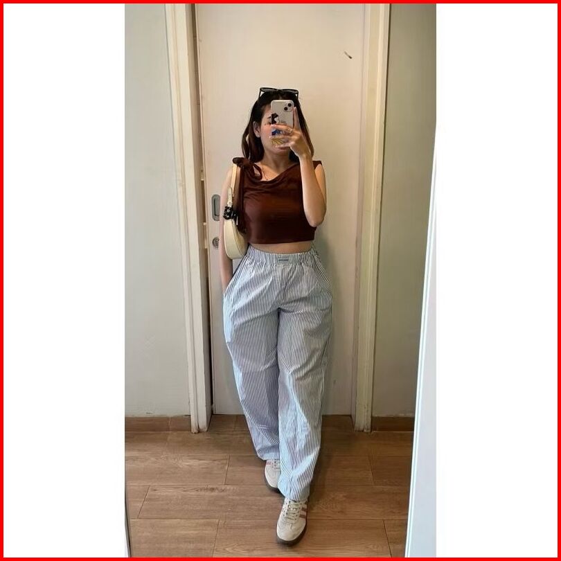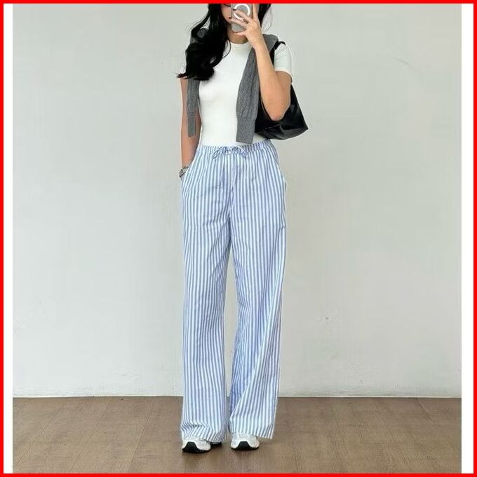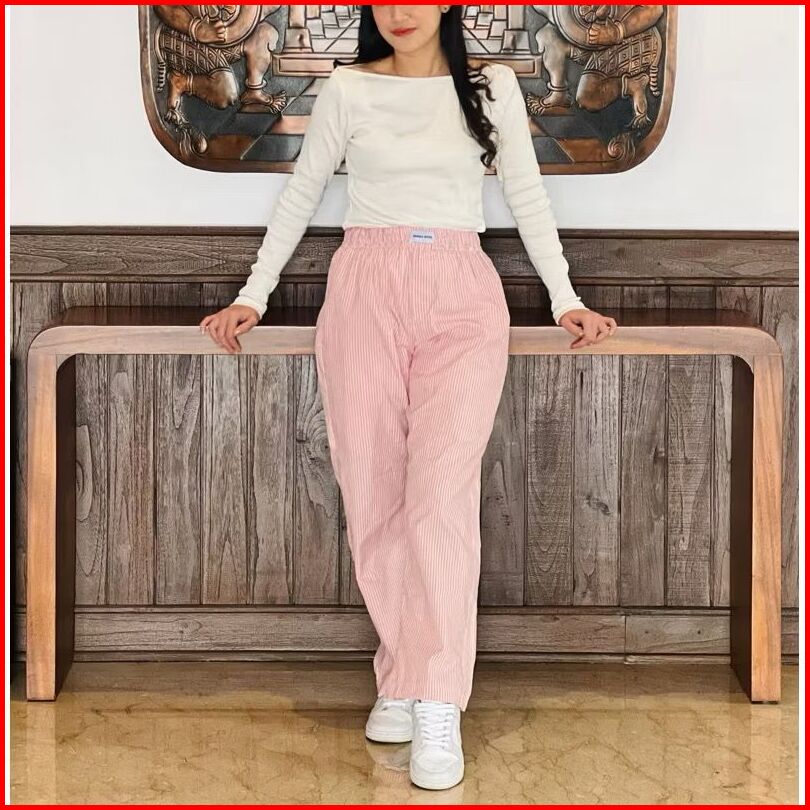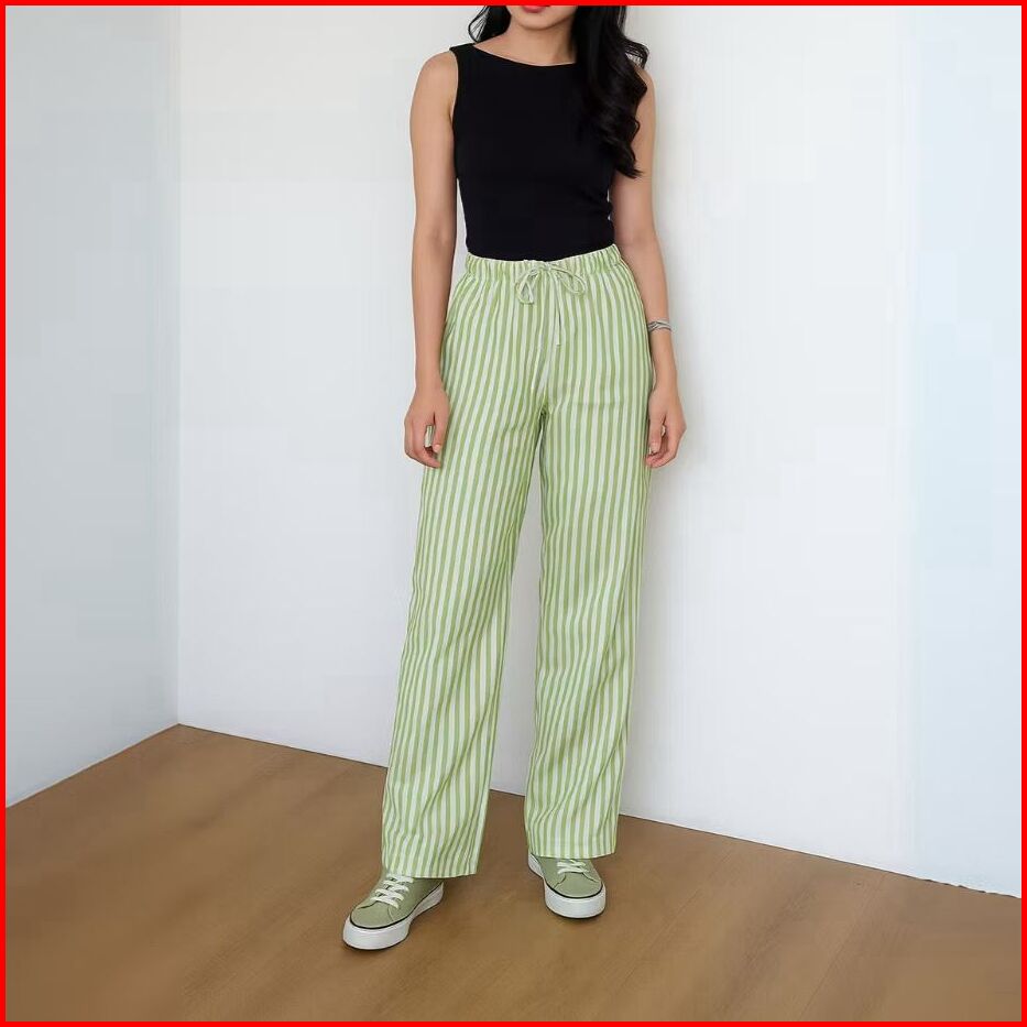 Lookbrand Striped Pants Highwaist Celana Panjang Wanita Motif Salur Kekinian