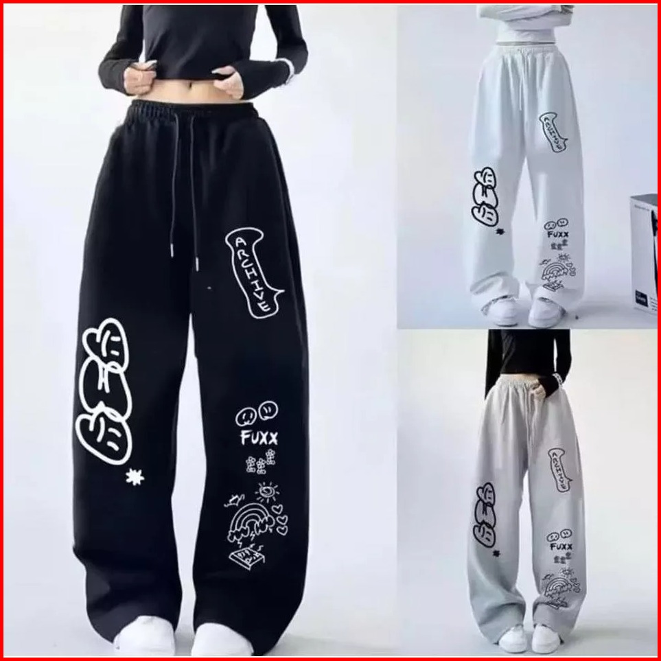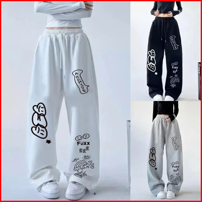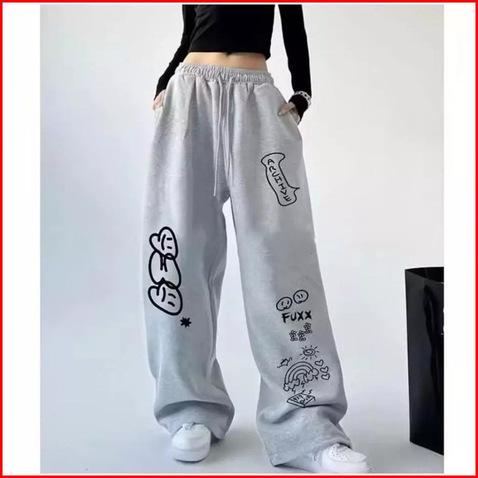 Omon Celana Panjang Baggy Fuxx Archive Kulot Pria Wanita Loose Pants Sablon Printing Desain Unik Dan Nyaman