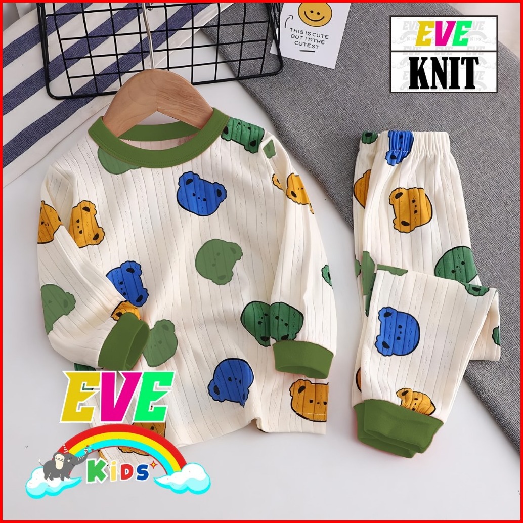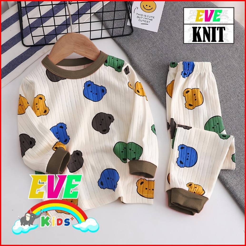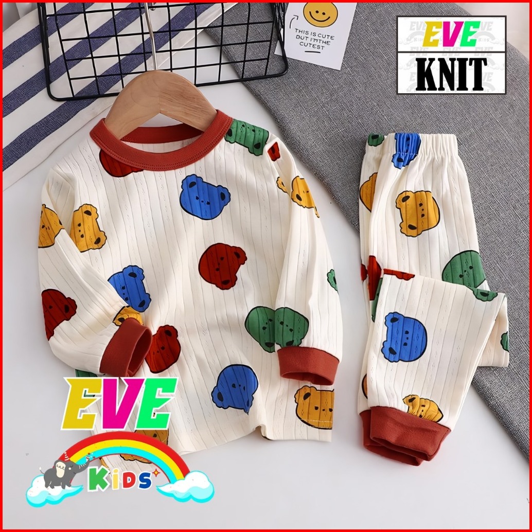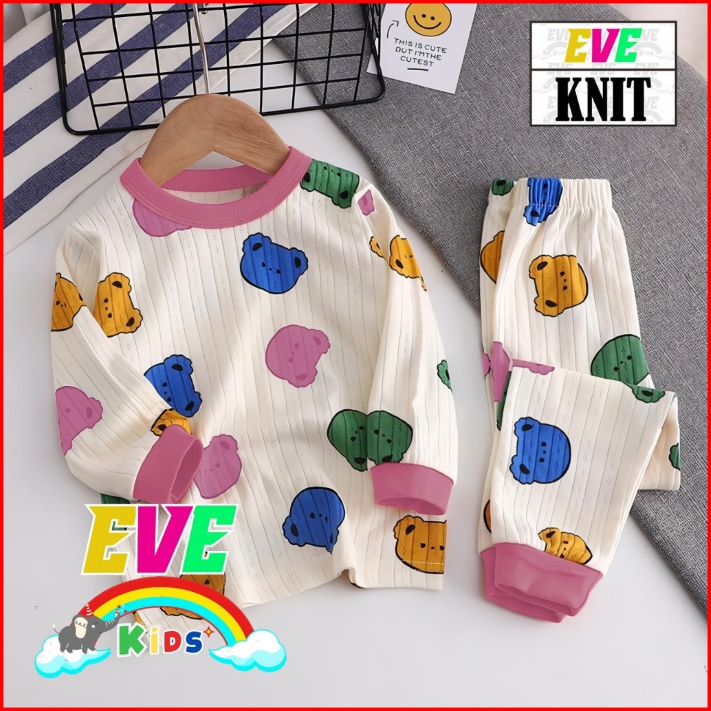 Eve Kids Set Bear Rainbow Piyama Anak Setelan Baju Tidur Anak Pp Set Lengan Panjang Cewe Cowo