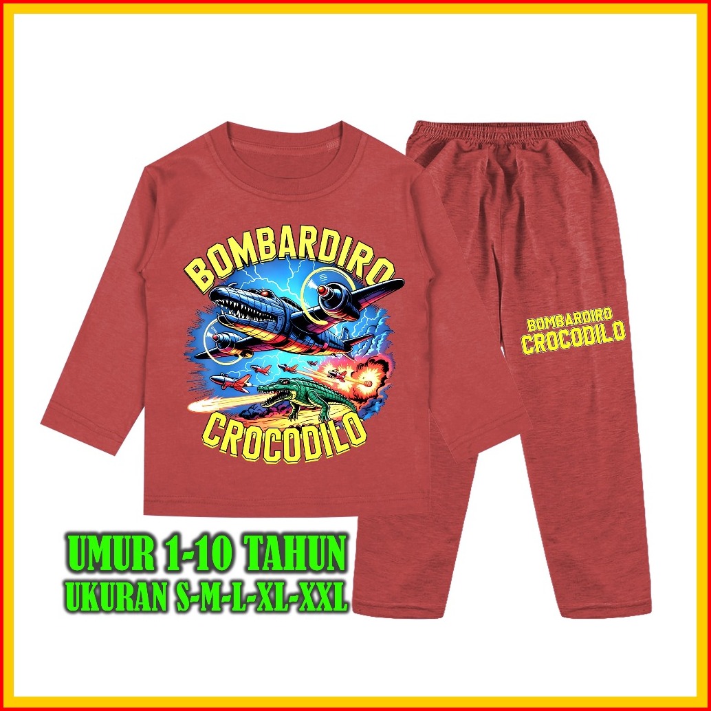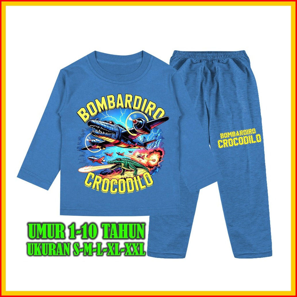 Setelan Baju Tidur Anak Gambar Bombardiro Crocodilo Piyama Lengan Panjang Celana Panjang 1 - 10 Tahun