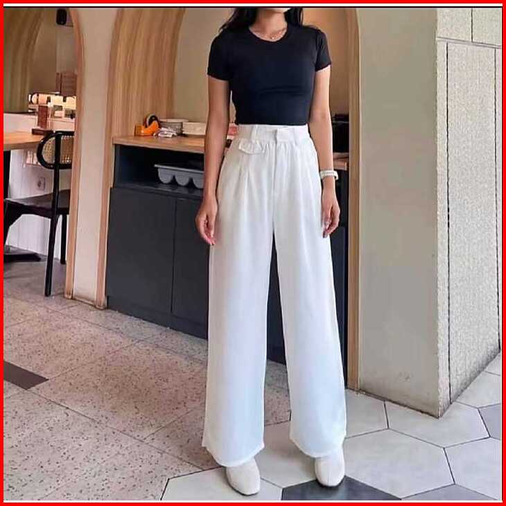 Oro-pants Celana Kulot Wanita Highwaist Pants Basic Knit Japanline Kekinian Terbaru Celana Kantor