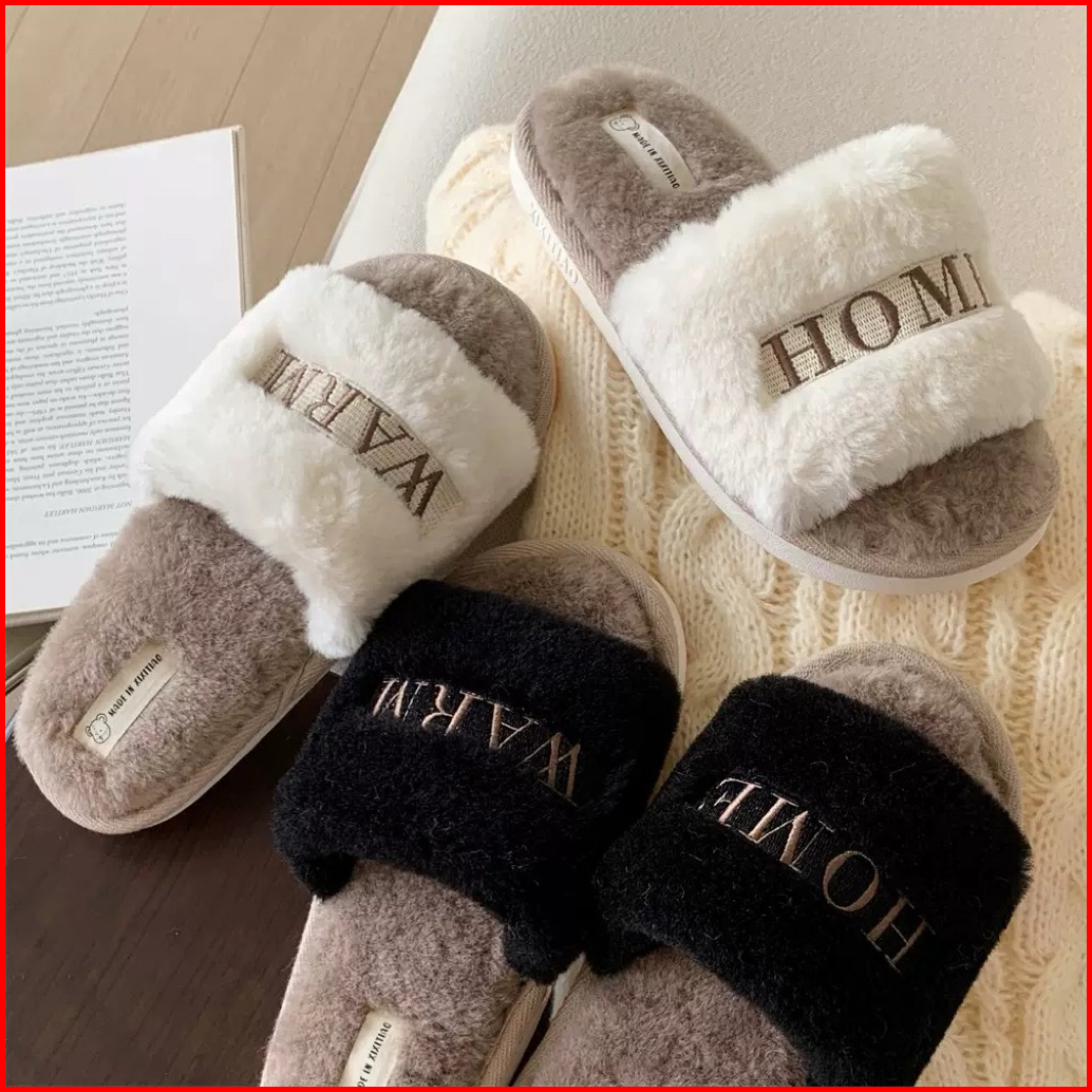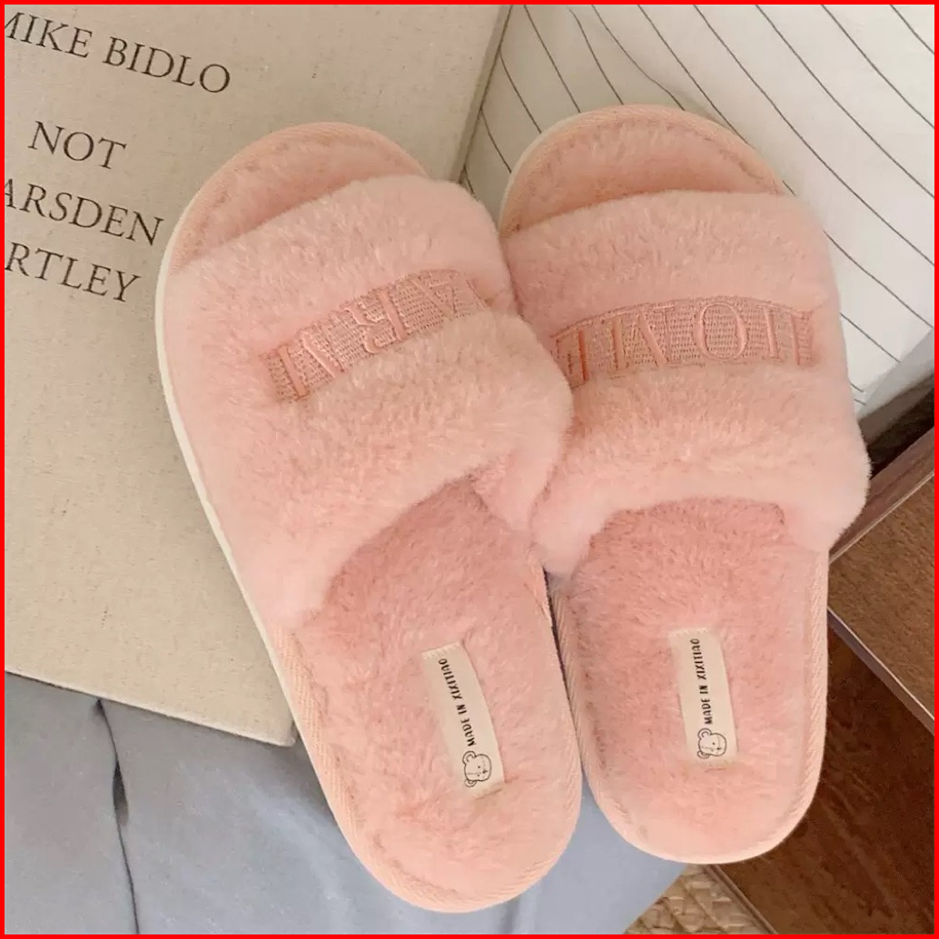 Sandal Bulu Rumah New Model Bermotif Tulisan Empuk Nyaman
