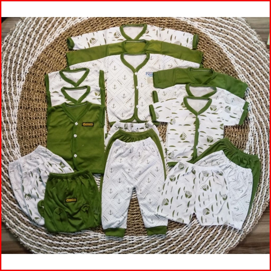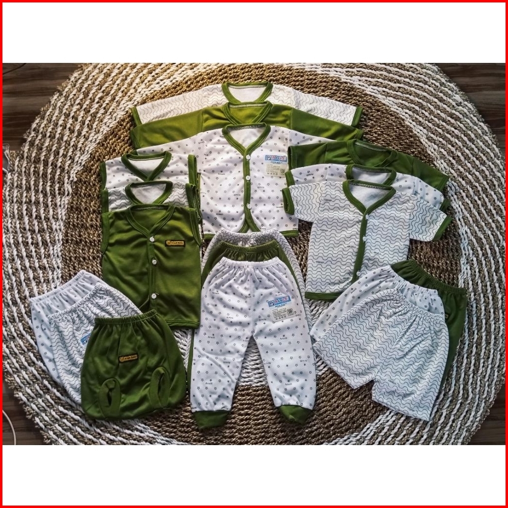Baju Bayi Paket 18pcs 9 Setel .baju 9pcs Celana 9pcs Untuk Usia 0-3 Bulan