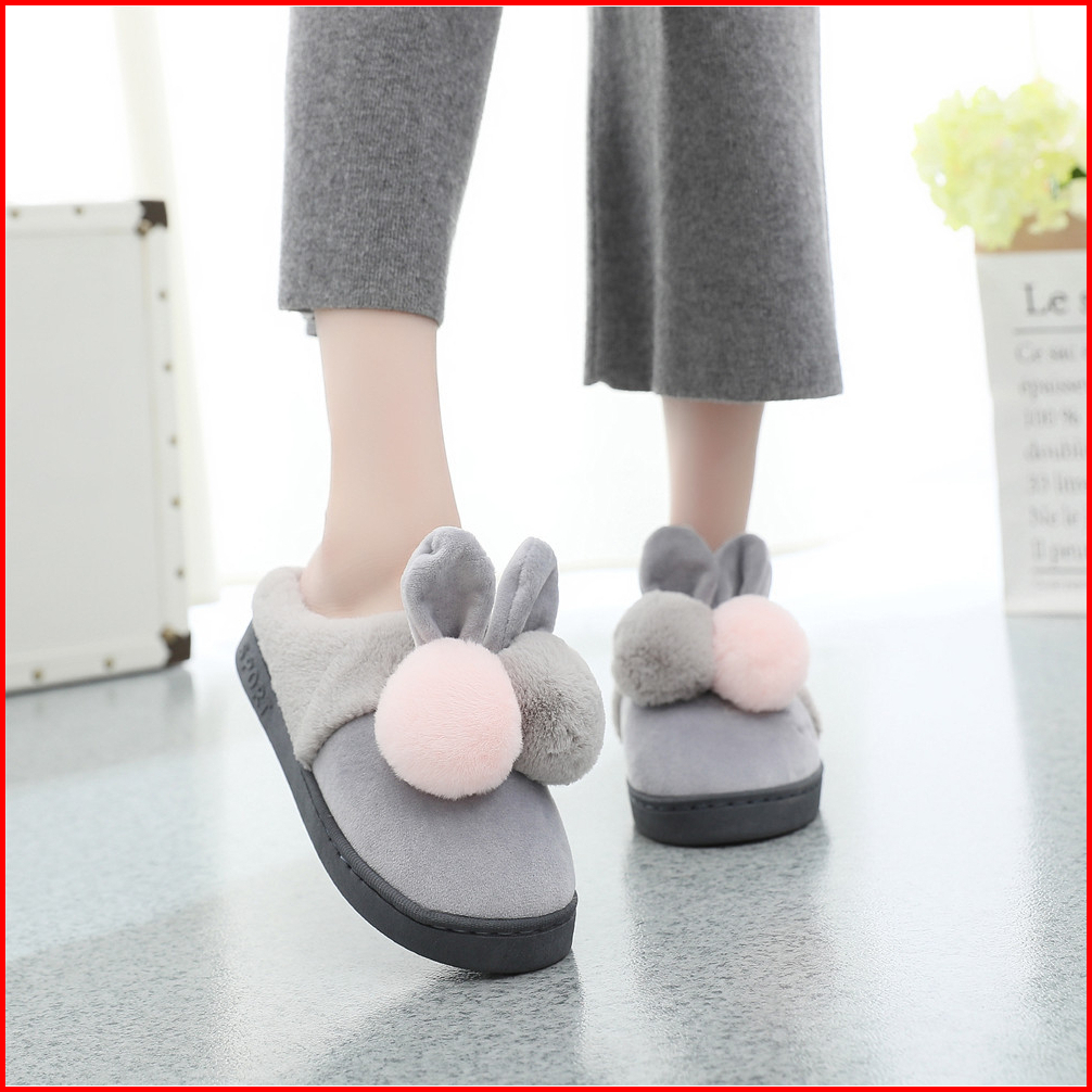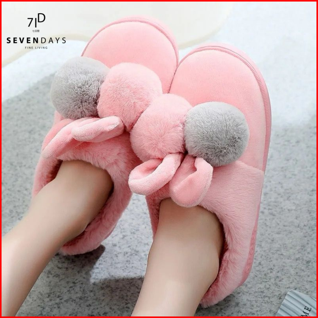 Sevendays Bunny Double Ball Rabit Ears Cotton Slippers Sendal Wanita Kelinci Sandal Rumah Lucu Sandal Bahan Bulu Halus