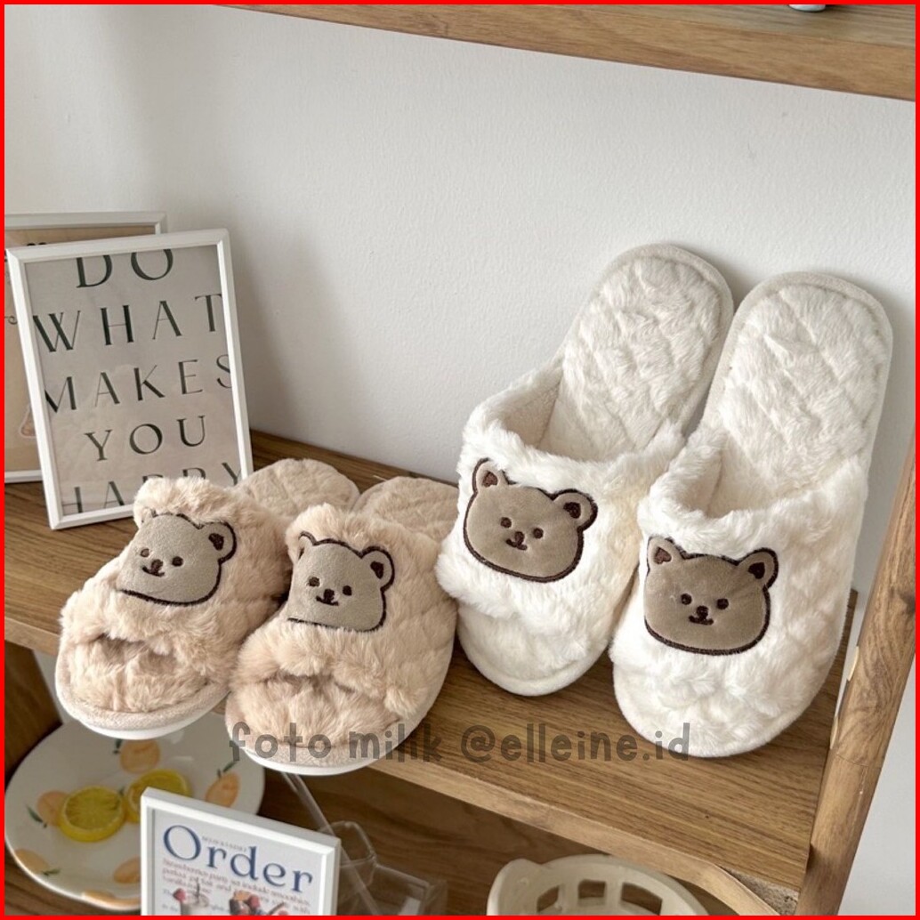Gom - Sandal Bulu Kamar Rumah Anti Slip Comfy Modis Empuk Sandal Rumahan
