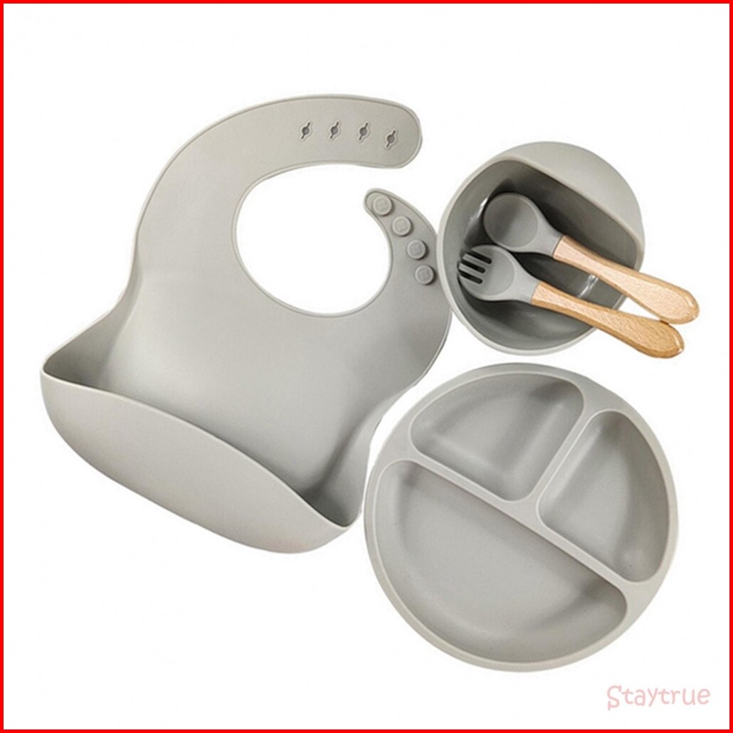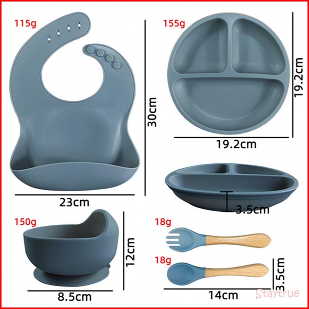 6pcs Peralatan Makan Bayi Bpa Free Tempat Makan Bayi Silikon Non Slip Premium Baby Feeding Set