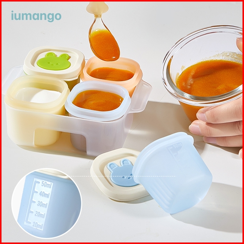 Iumango 4pcs 50ml 4 Food Container Silicone Mpasi Bayi Tempat Mpasi Silikon Wadah Tutup Silikon