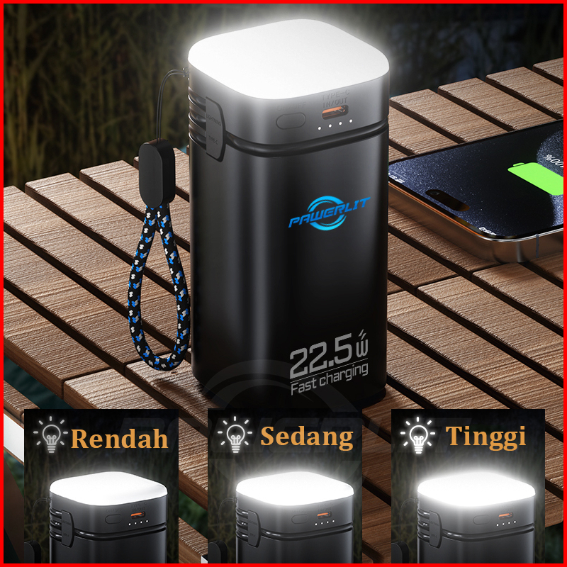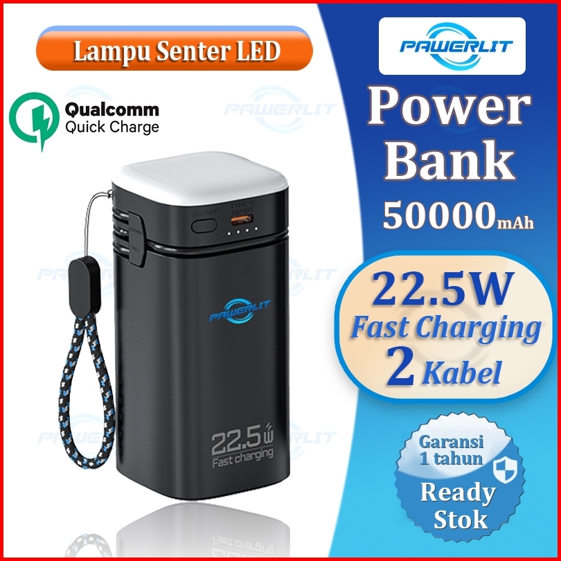 Pawerlit Powerbank 50000mah Fast Charging Power Bank Type-c Kabel 22.5w Pd20w Lampu Emergency Senter Led