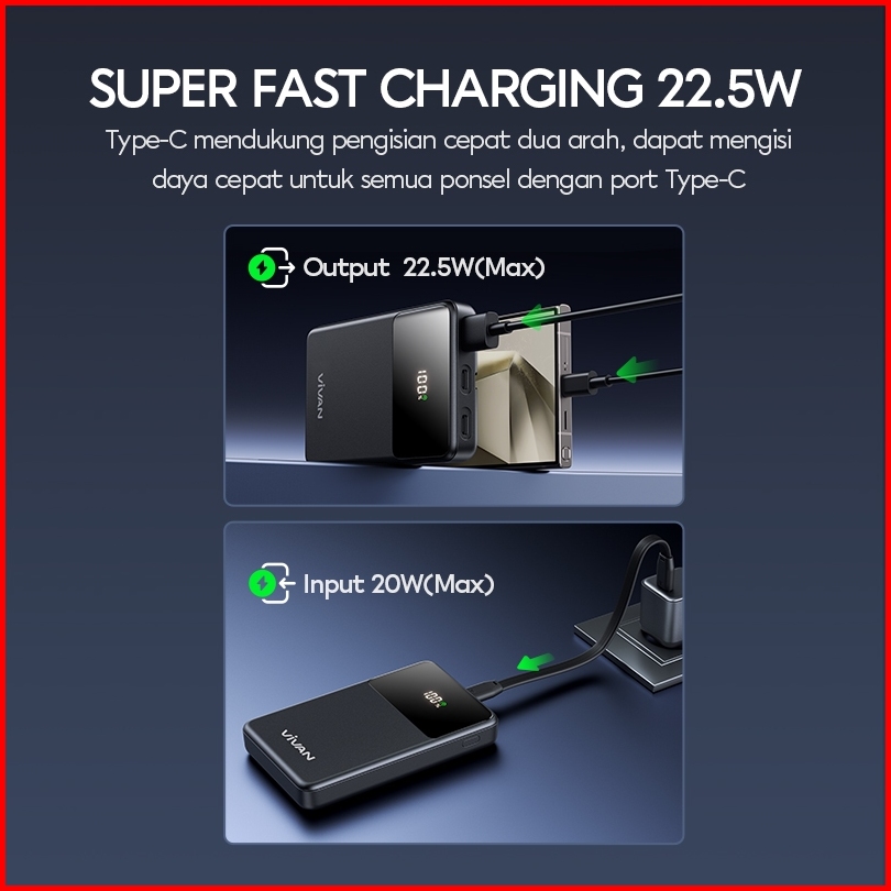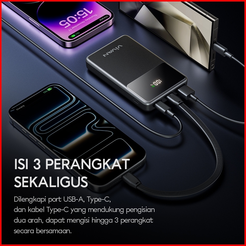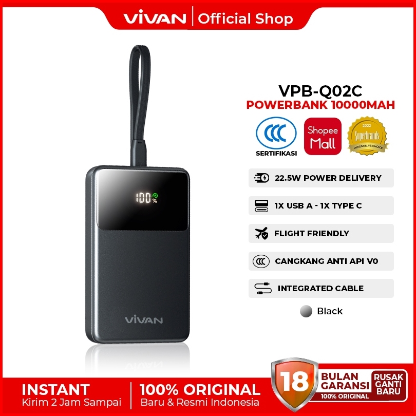Mini Size Vivan Mini Powerbank 10000mah Vpb-q02c 22.5w Fast Charging 3 Output Flight Friendly Garansi 18 Bulan