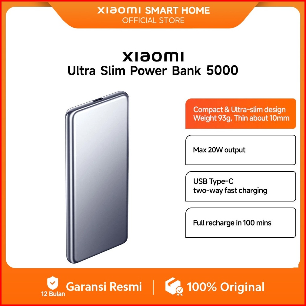 Xiaomi Ultra Slim Power Bank 20w 5000mah Compact Ultra-slim Design Max 20w Output Usb Type-c Two-way Fast Charging Store
