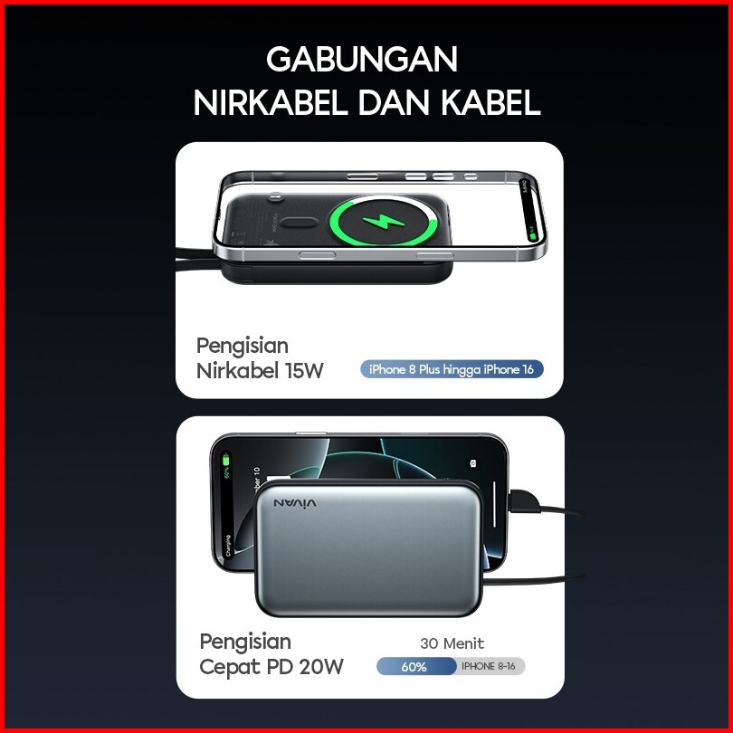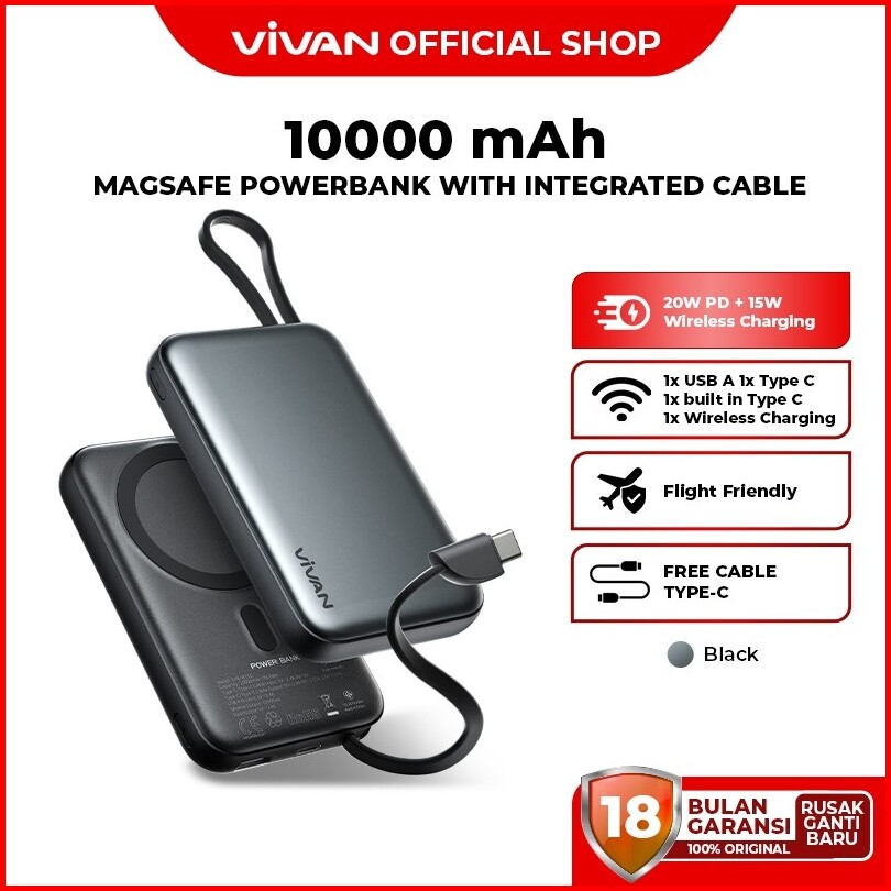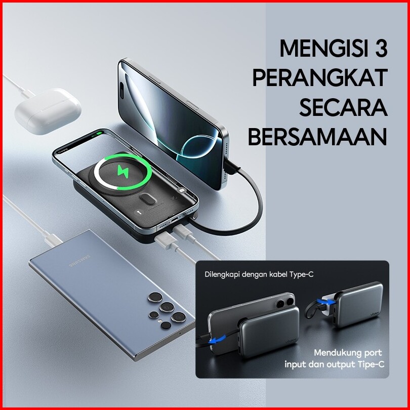 Vivan Powerbank 10000mah Magnetik Wireless Pd 20w 15w 3 Output For Iphone 17 16 15 14 13 12 11 Type C Huawei Sumsang Vpb