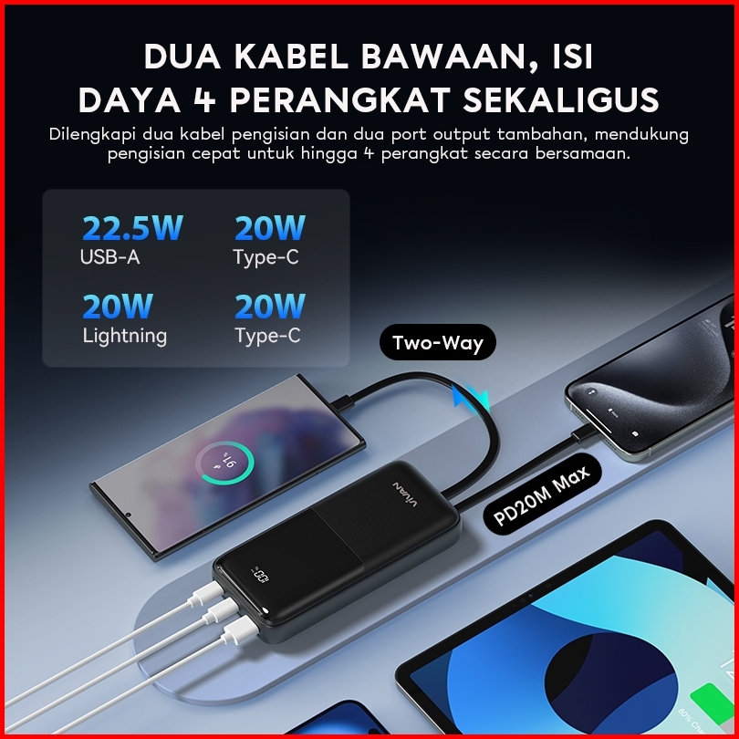 New Vivan Powerbank 20000mah 10000mah Fast Charging 22.5w Pd Led Display 4 Output Free Kabel Type-c Lightning Pengisian