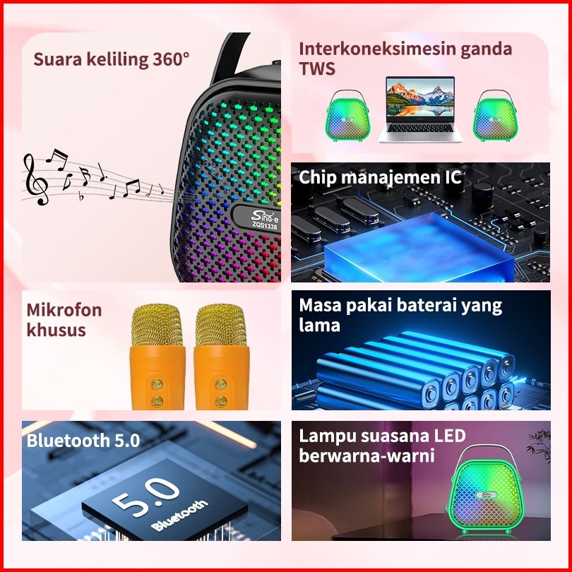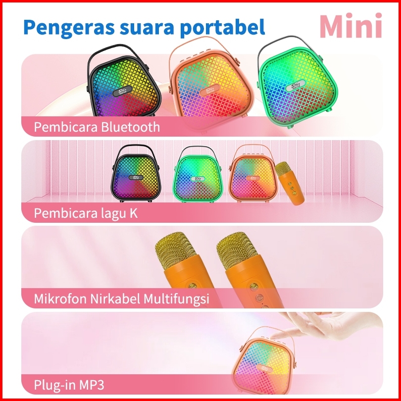 Maiket Speaker Bluetooth Mini Karaoke Portable Anak Musik Box 2 Mic Wireless Hi-fi Fm Radio Tf Tws
