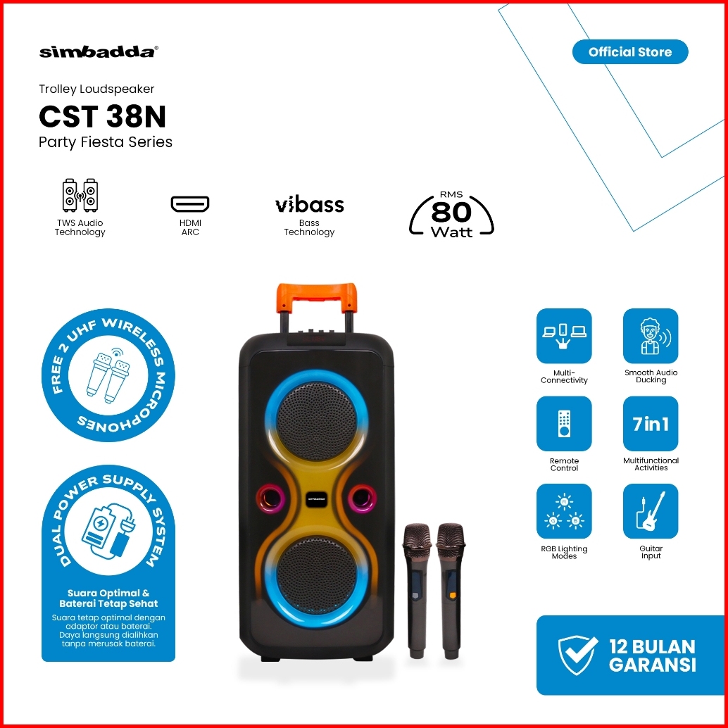 Simbadda Cst 38n Trolley Speaker Karaoke Bluetooth Mega Bass Rgb Tws