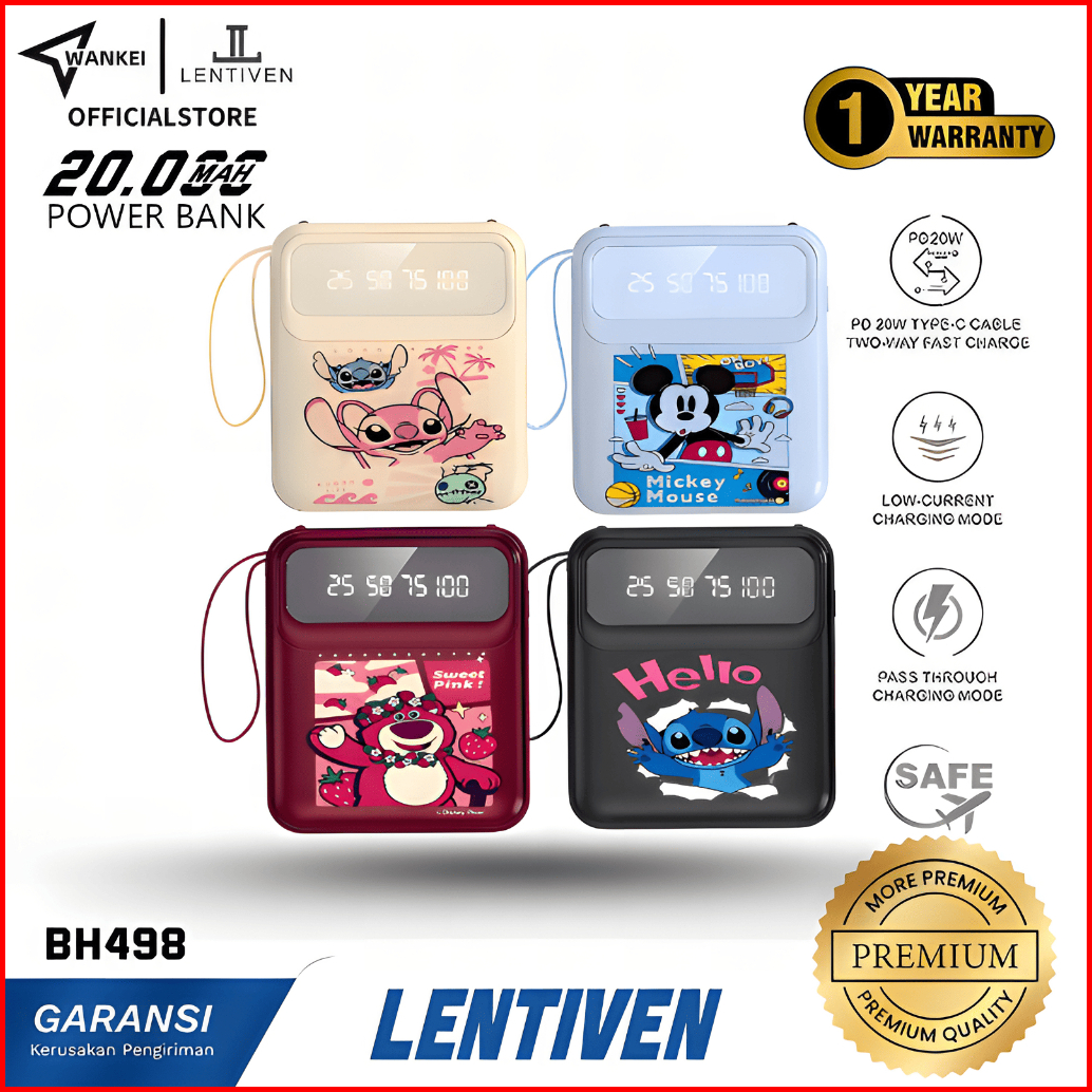 Wankei Lentiven Powerbank 20000mah Mini Size With 4 Cabel Data Fast Charging Led Display Bh498
