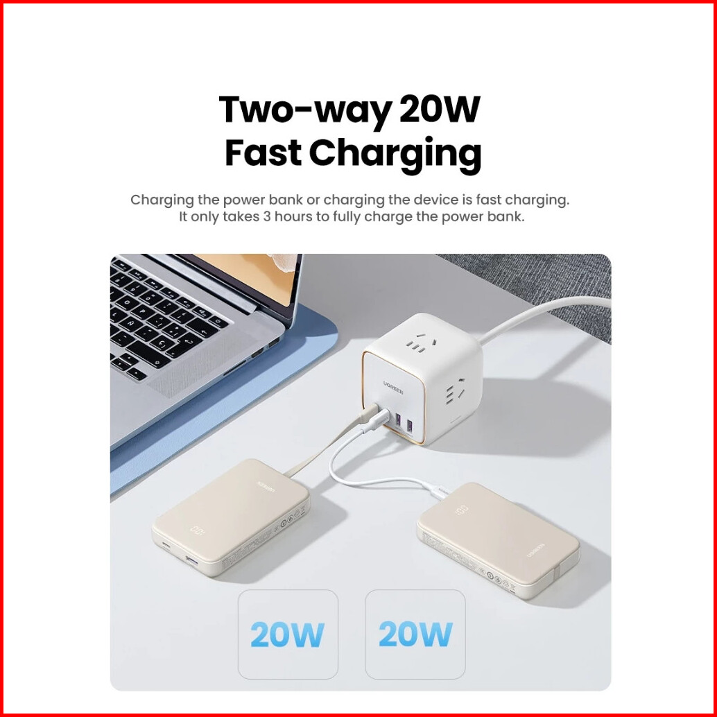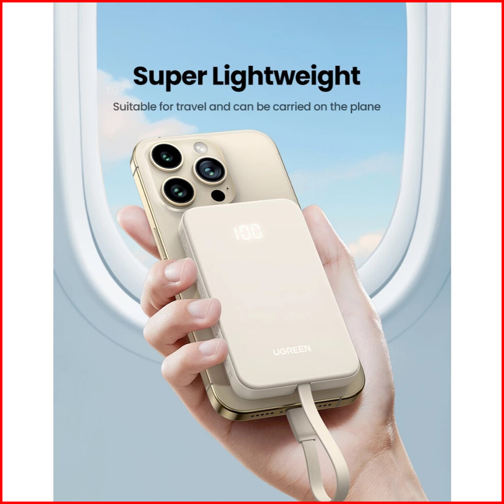 Ugreen Ccc Powerbank 10.000mah Pd Qc 3.0 Fast Charging 22.5w Led Built In Cable 25741