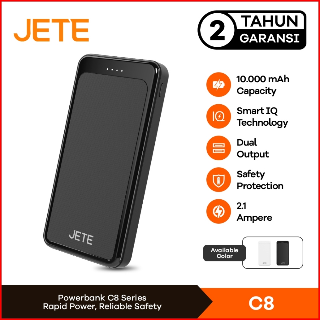 Jete C8 10000mah Powerbank Fast Charging Portable Usb Port Input Type C - Garansi 2 Tahun